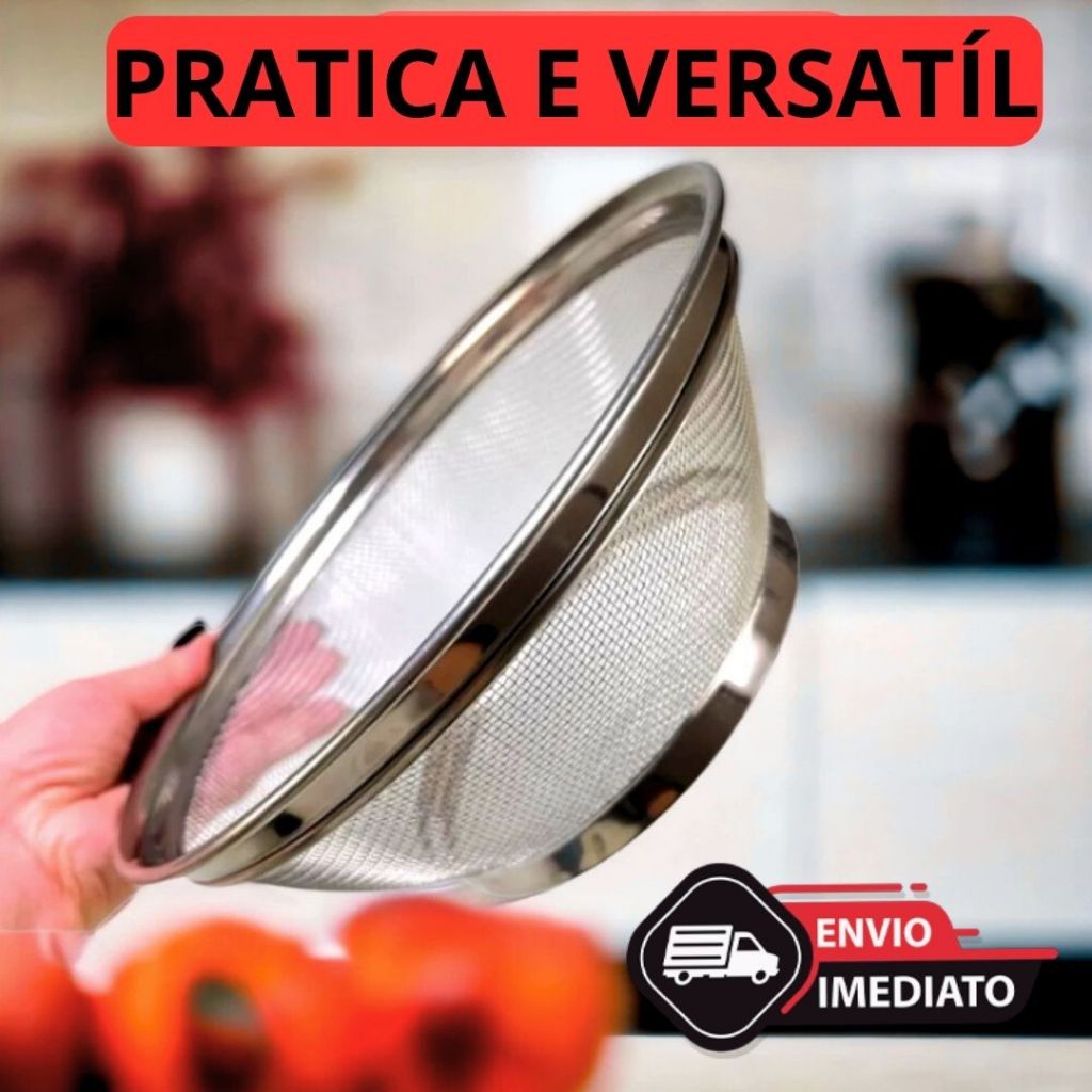 KIT 2 Peneira coador de Cozinha + Cesta Inox Utensílios de Cozinha Multiuso Pra Fritura Lavar e Coar