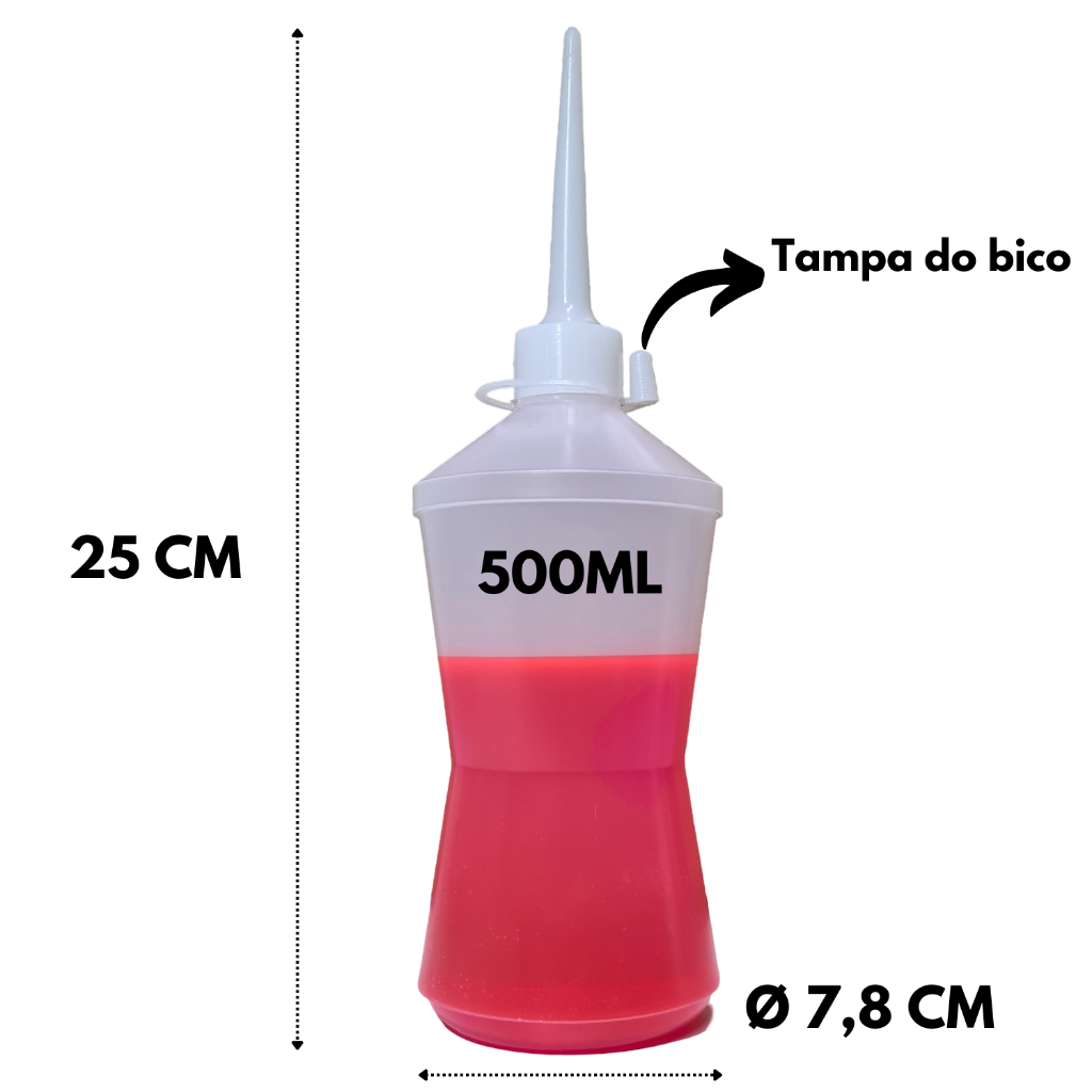 Almotolia Pisseta Frasco Bisnaga Bico Reto Transparente 500ml