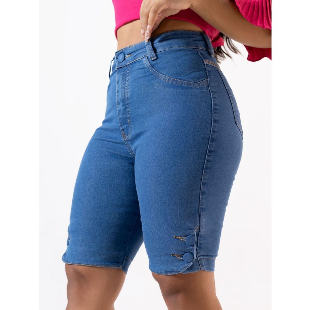 Bermuda Jeans Pedal Botao Lateral