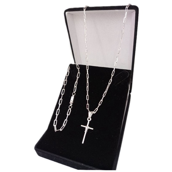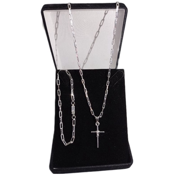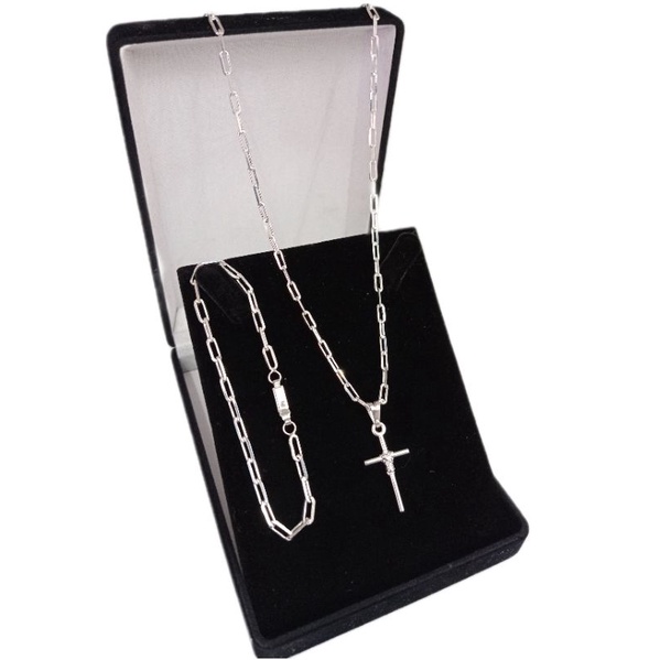 Kit Cordão Correntinha + Pulseira 3mm Pingente Cruz Banhado A Prata 925