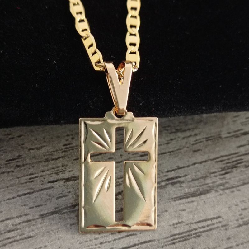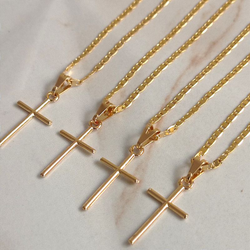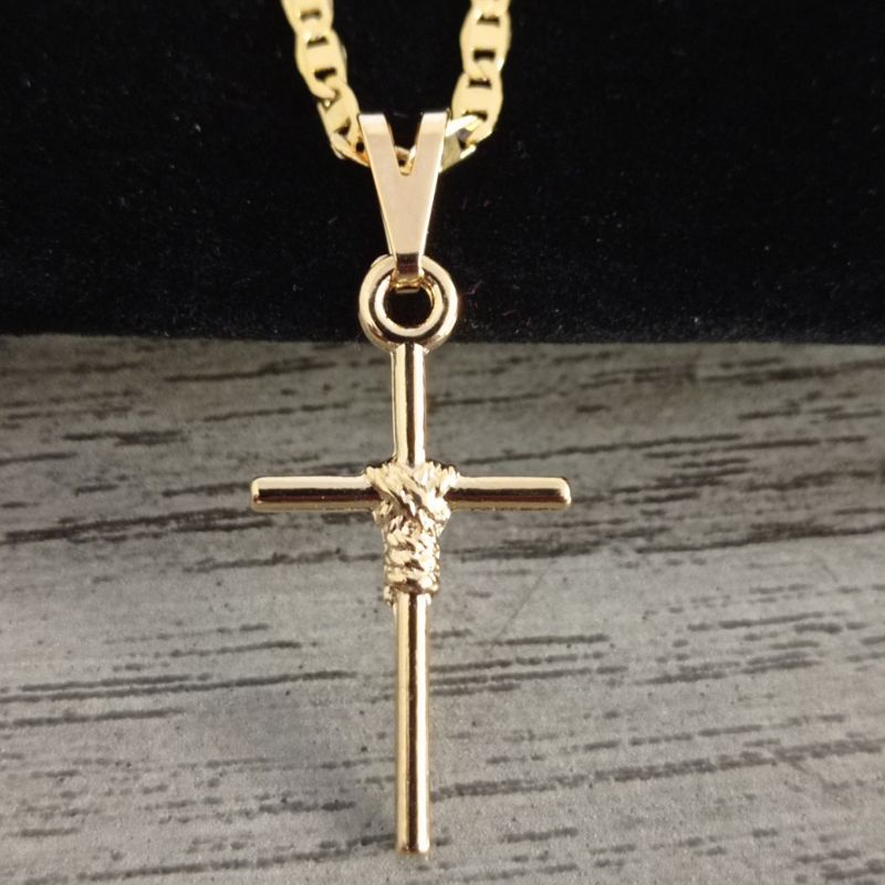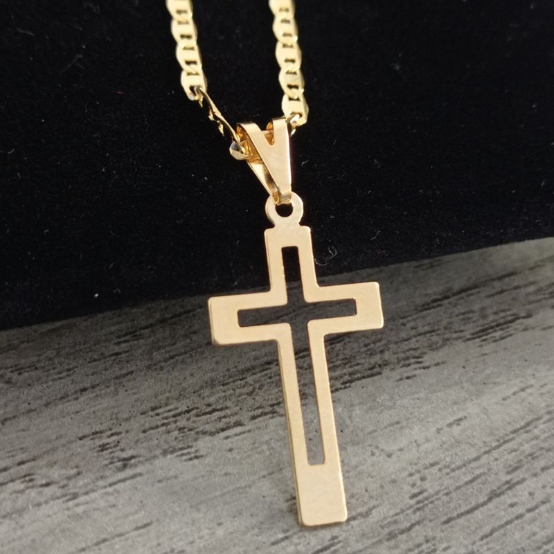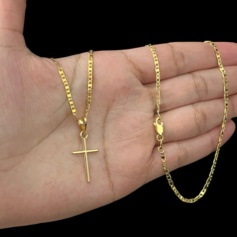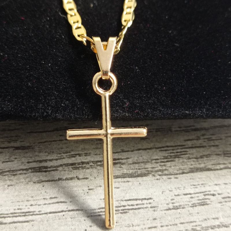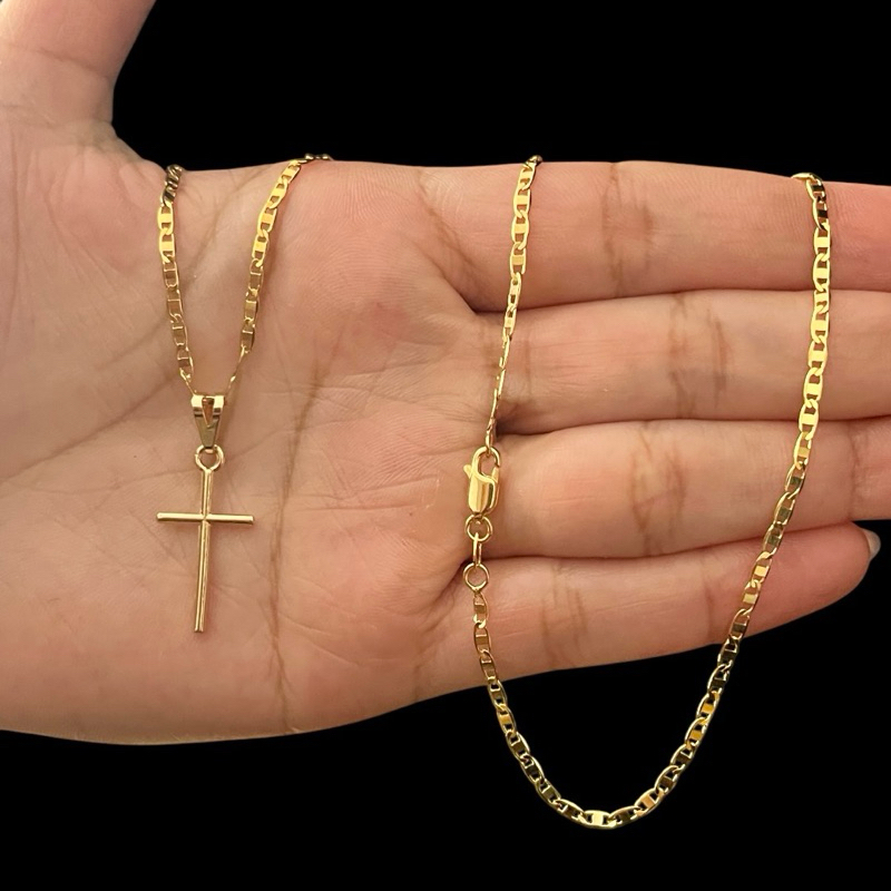 Cordão Correntinha Piastrini Masculina Banhada A Ouro 18k Fina + Pingente Cruz Palito