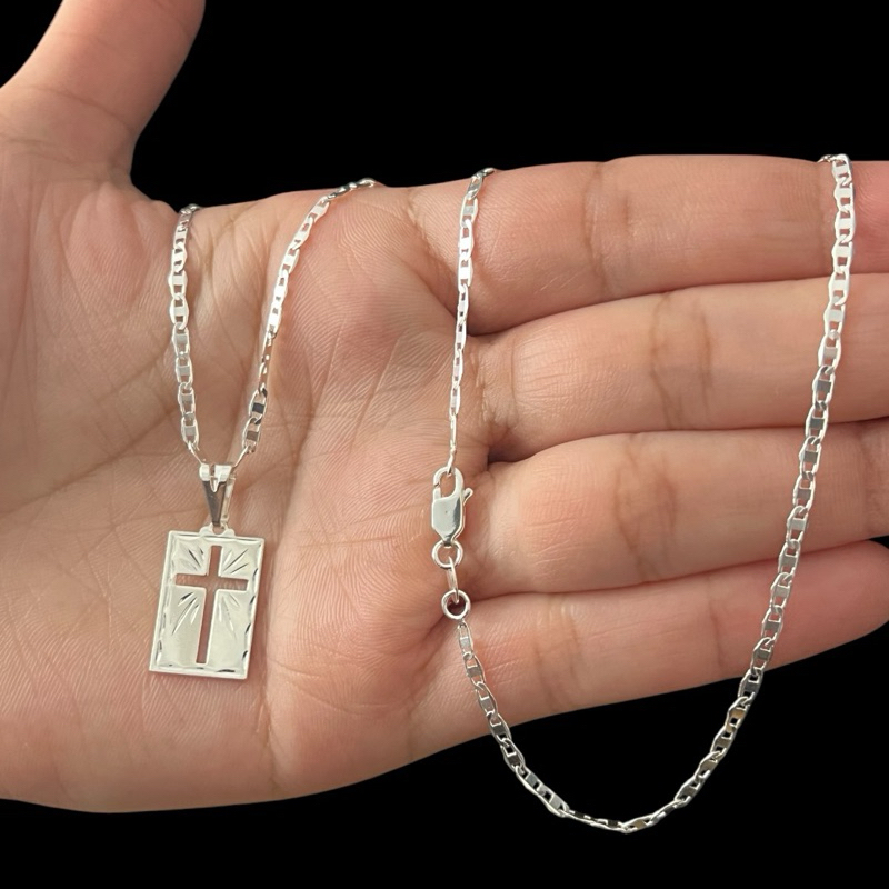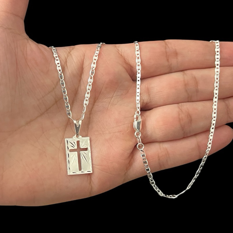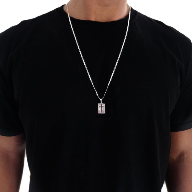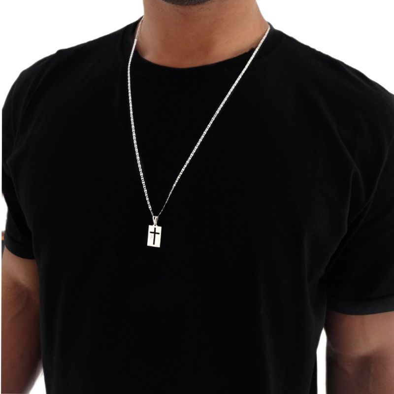 Correntinha Corrente Prata 925 Masculina Curta + Pingente plaquinha Retangular Folheada