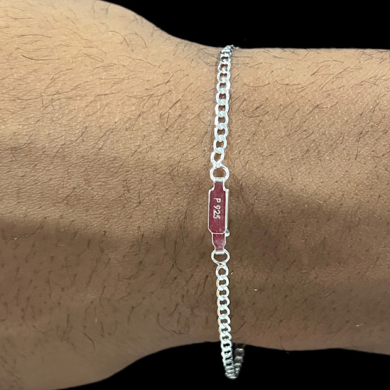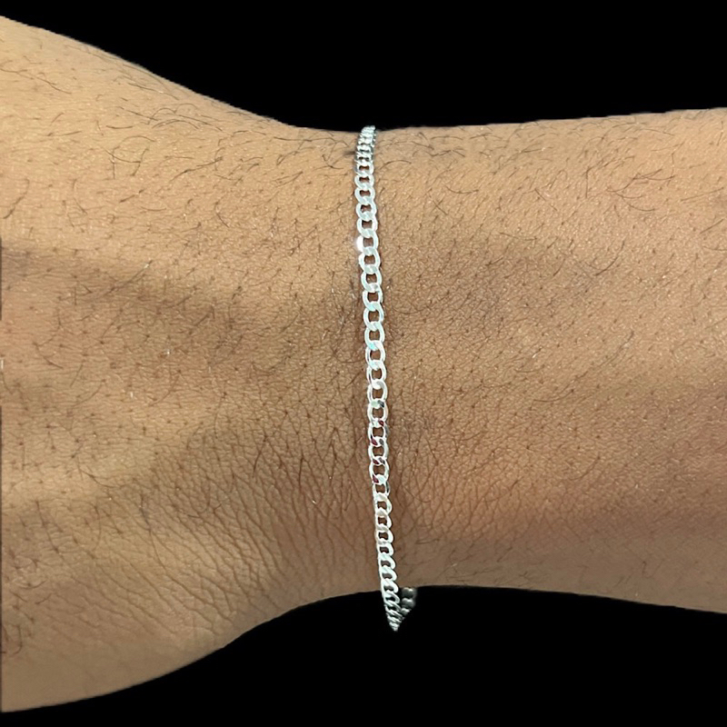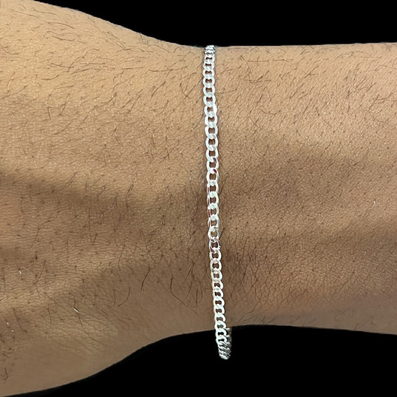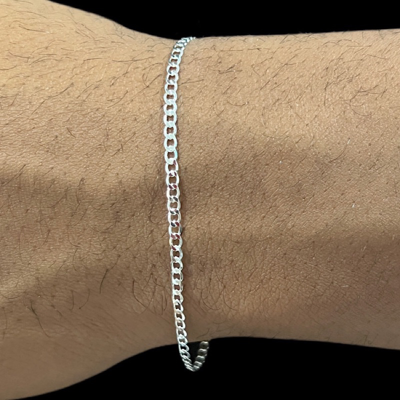 Pulseira Masculina 18cm Grumet 2mm Escama de Peixe Banhado A Prata 925