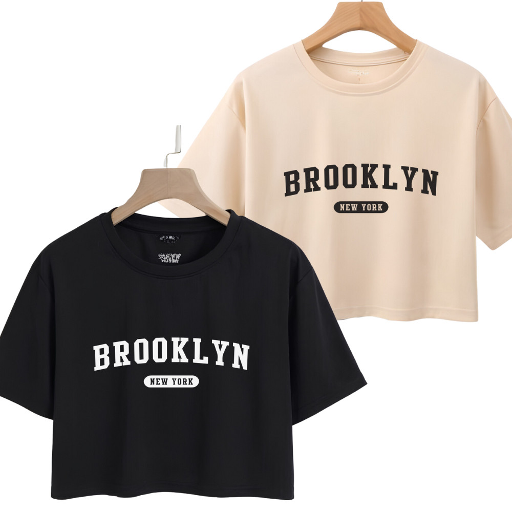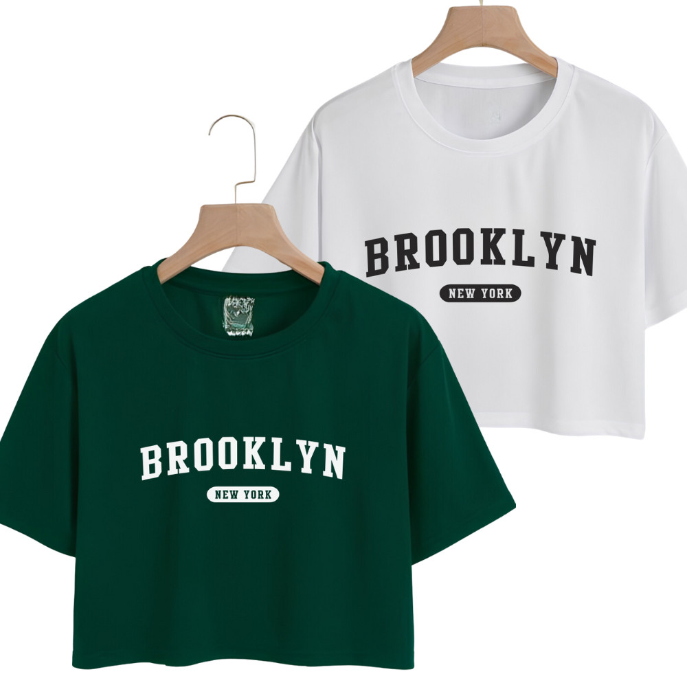 Kit 2 Blusa Cropped Plus Size Feminina 100% Algodão Blusa Plus Size Brooklyn