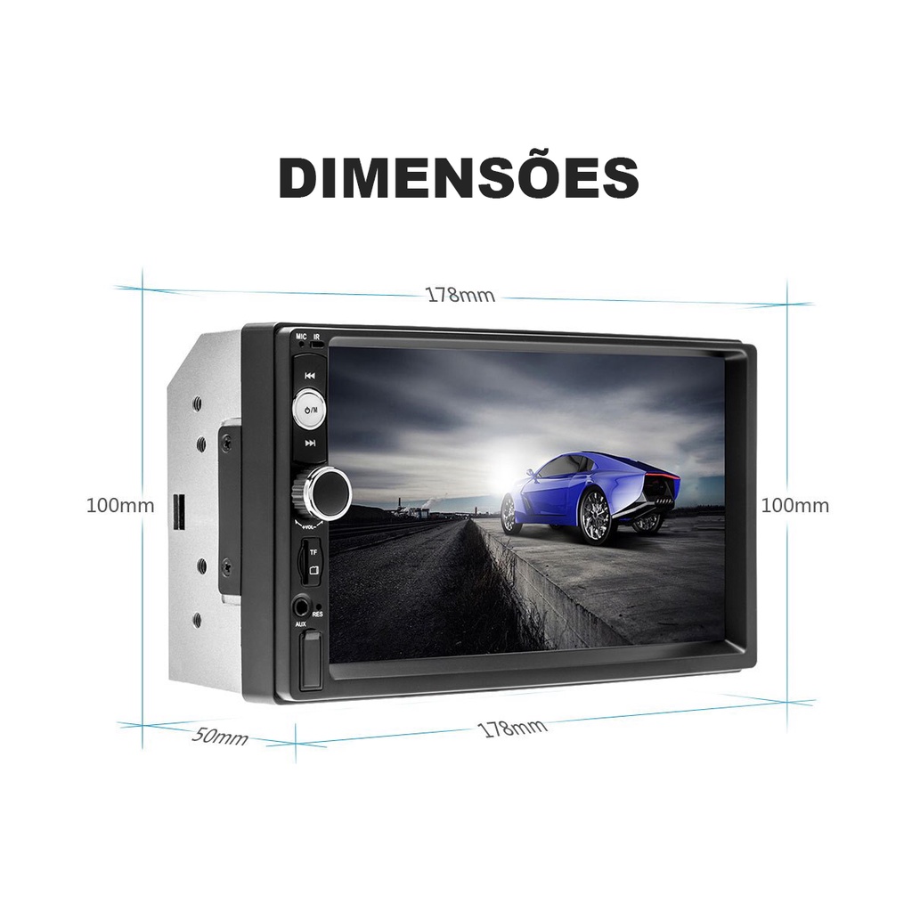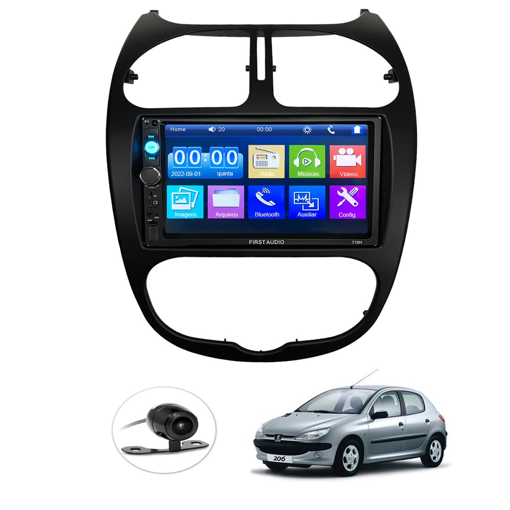 Kit Central Multimidia DVD 2 Din Mp5 Peugeot 206 2004 a 2008 Preta