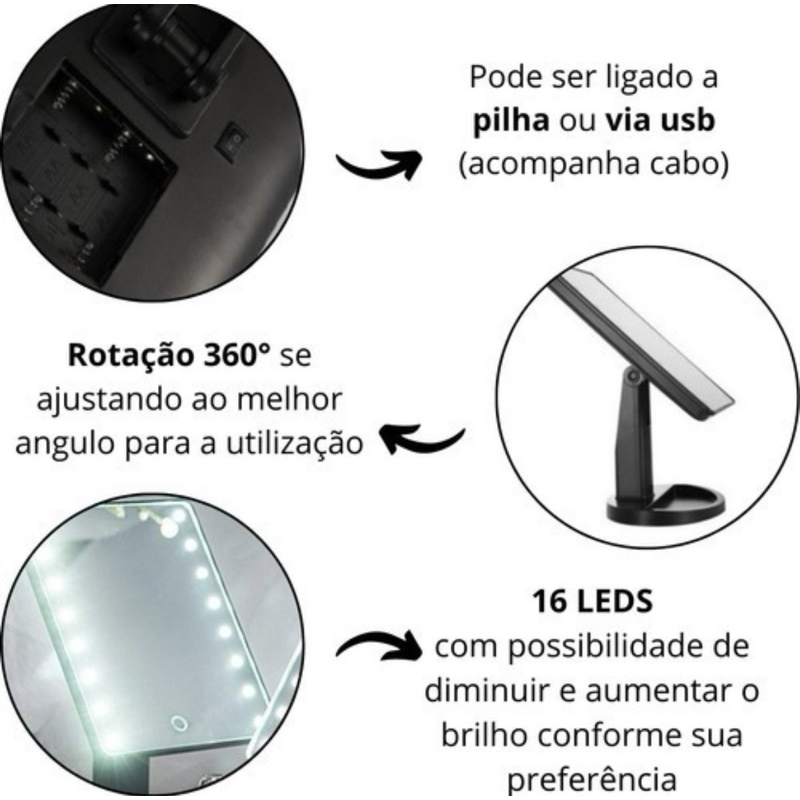 Espelho De Mesa Led Portátil Maquiagem Regulagem Camarim