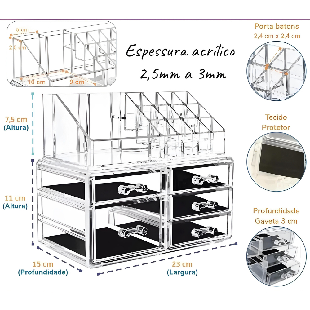 Organizador Cosméticos Porta Maquiagem De Acrílico 5 Gavetas