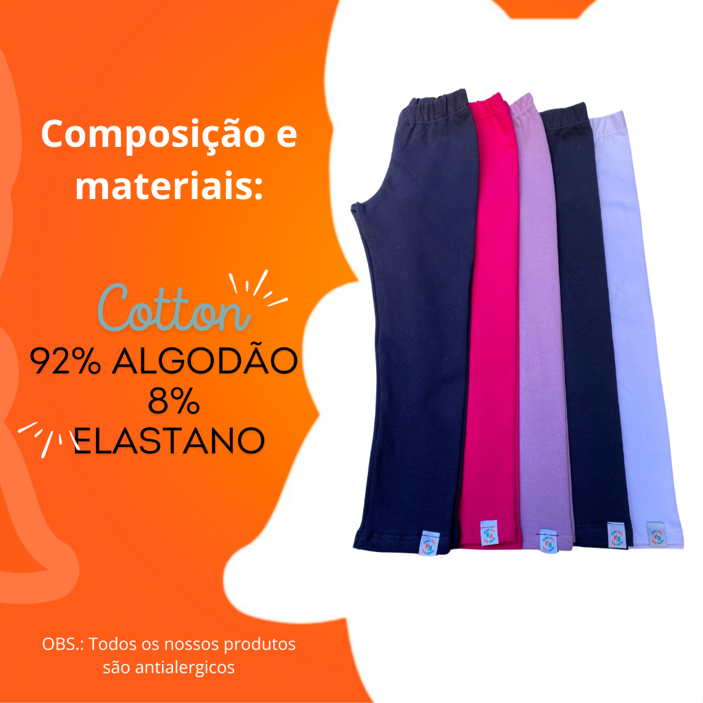 Kit 2 Calça Legging Infantil Para Meninas Em Algodão