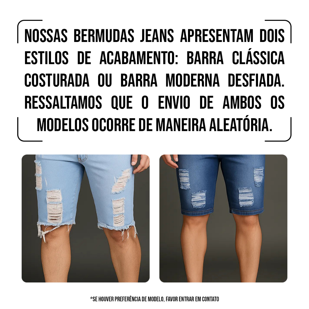 KIT 3 Shorts masculinos Bermuda Jeans rasgados Estilo fashion masculino Outlet de fábrica