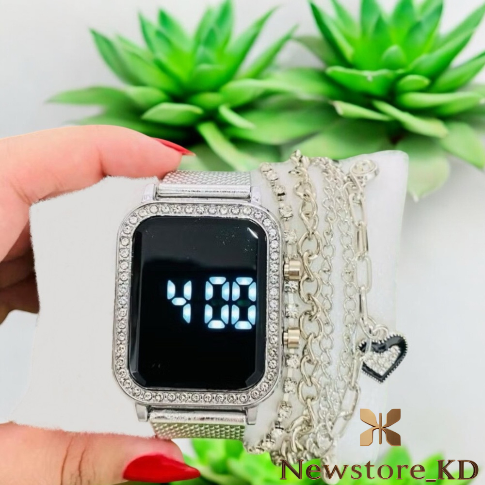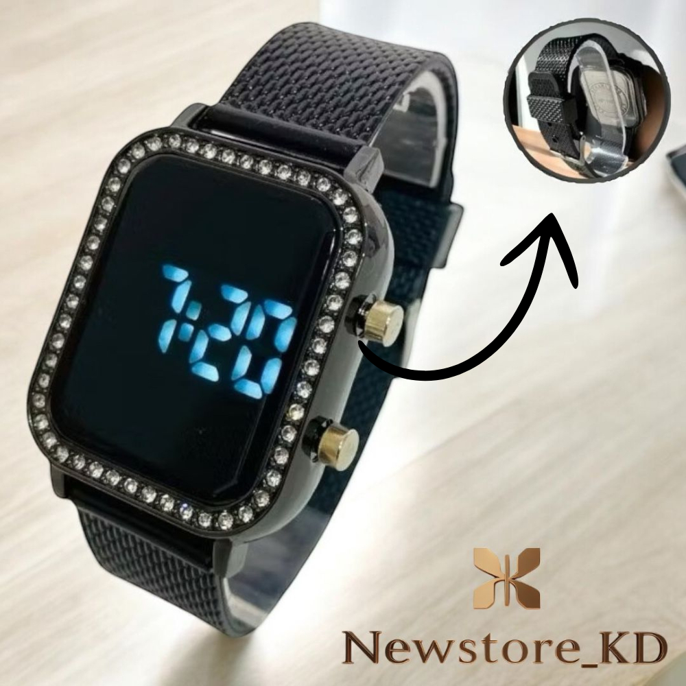 Relógio Feminino Digital led Brilho Pulseira Resina Com Strass + 1 PULSEIRA DE BRINDE
