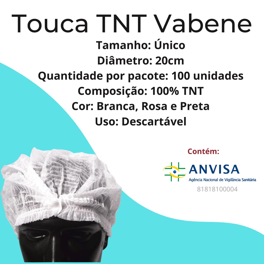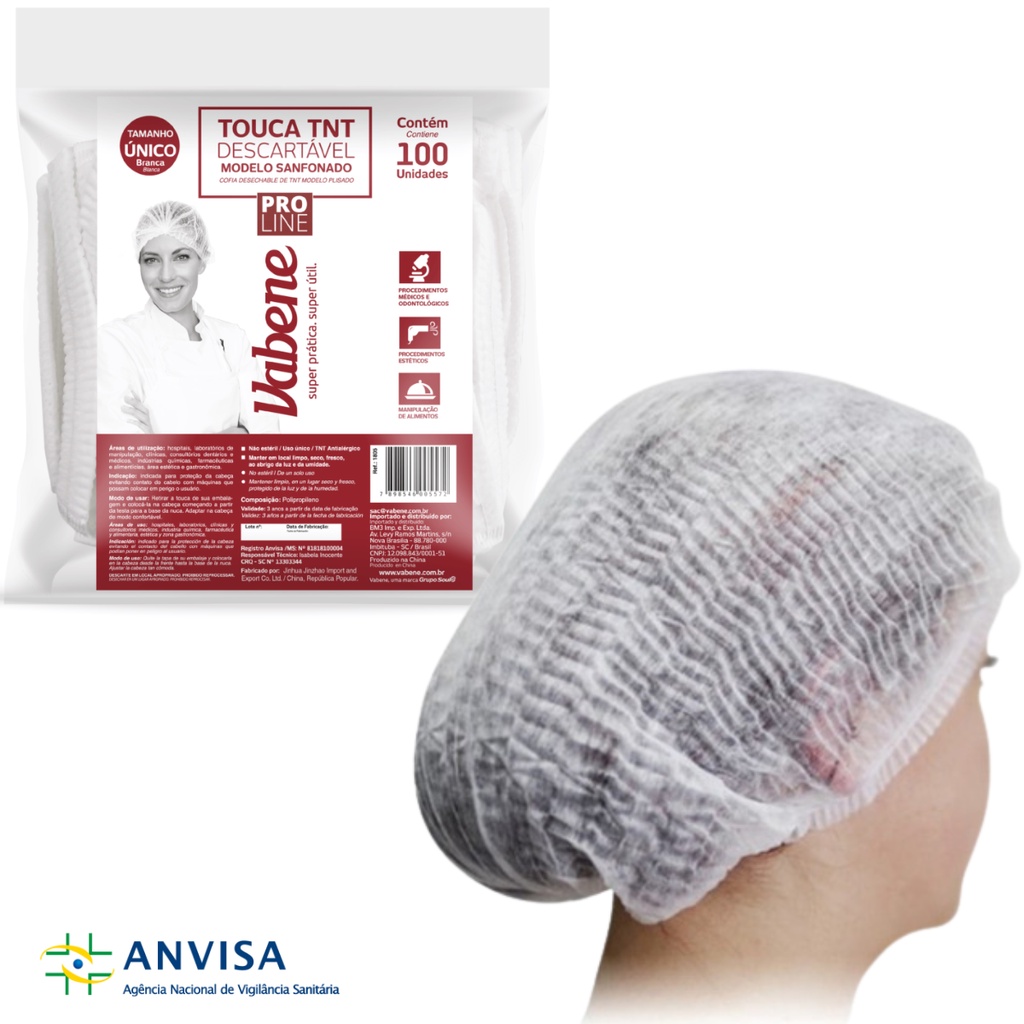 Touca Descartável Sanfonada TNT - com 100 unidades