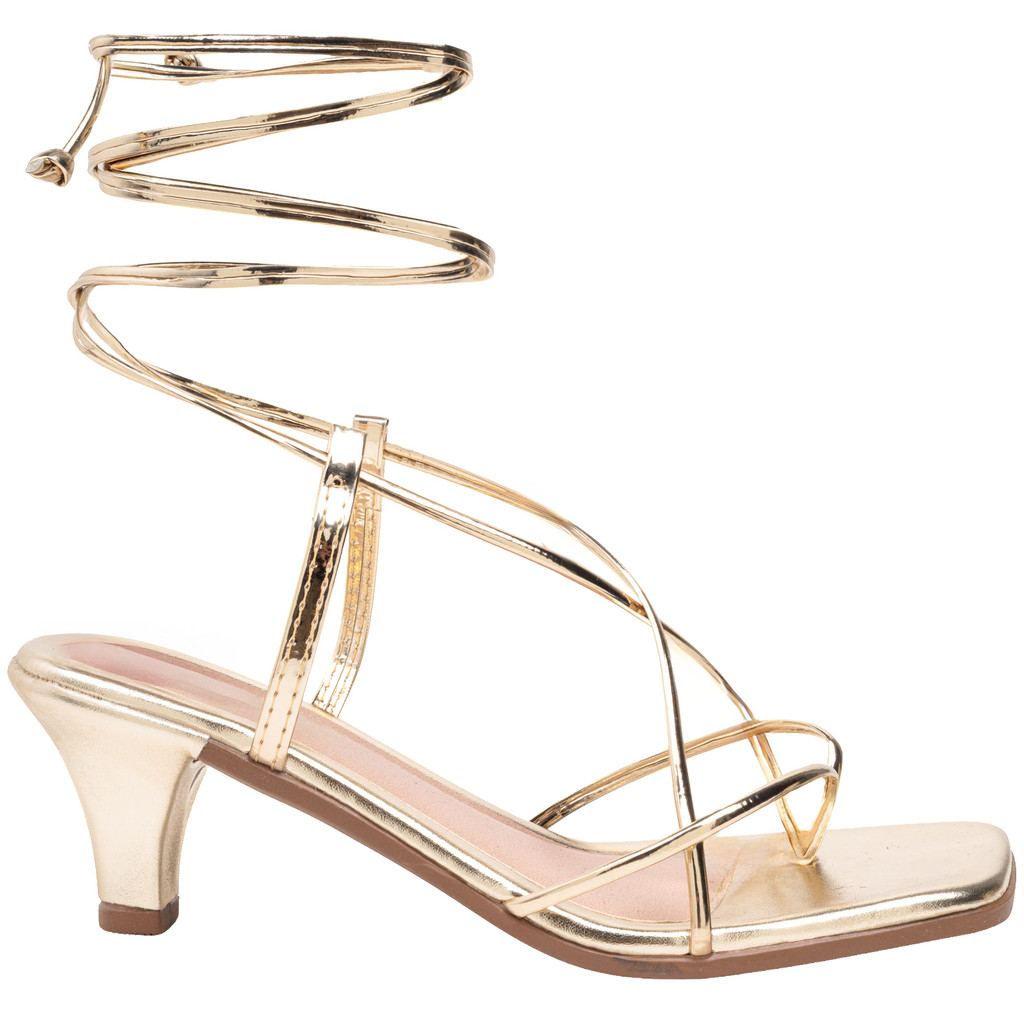 Saltinho Sandália Feminina Salto Fino Médio Delicado Confortavel Amarração