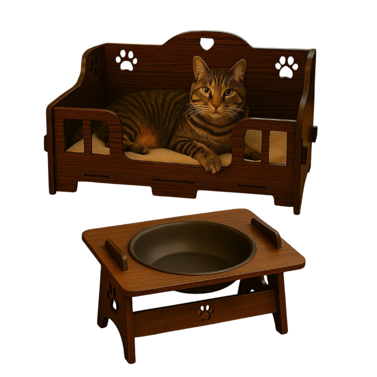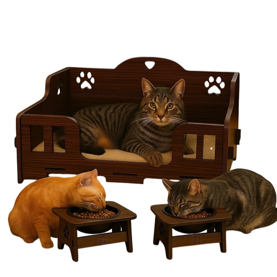 Kit Caminha Pet mais Comedouro Para Cães e Gatos com MDF de 3mm
