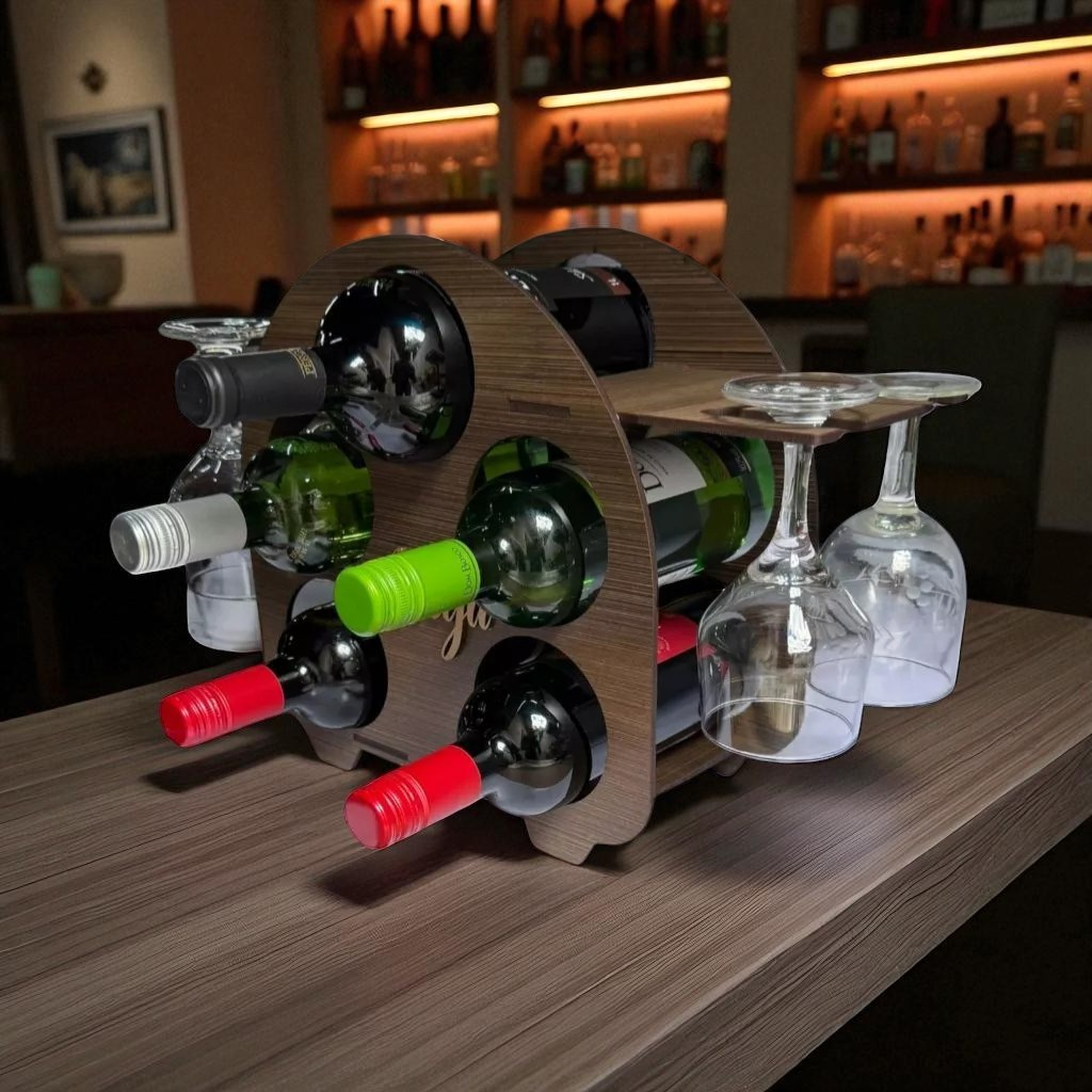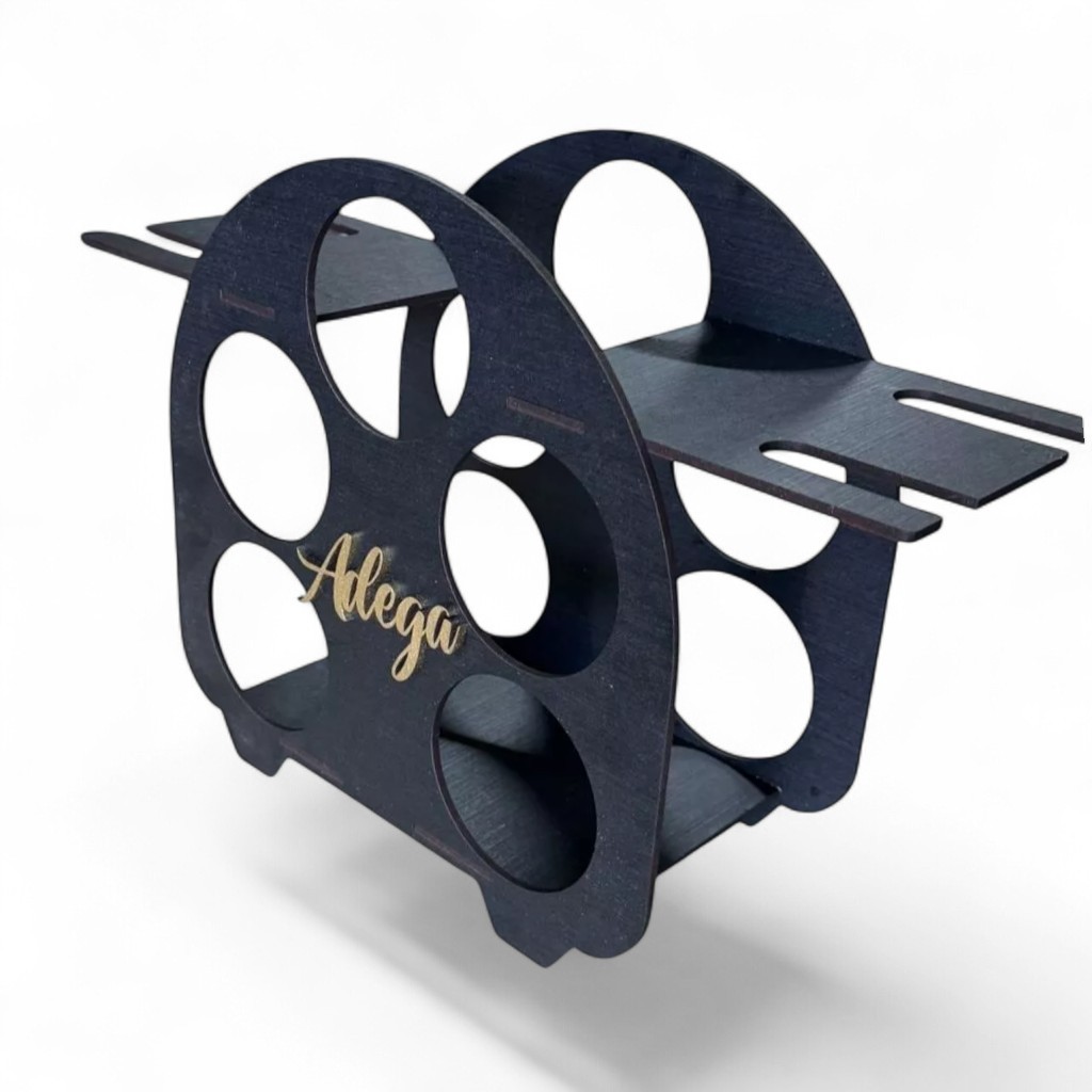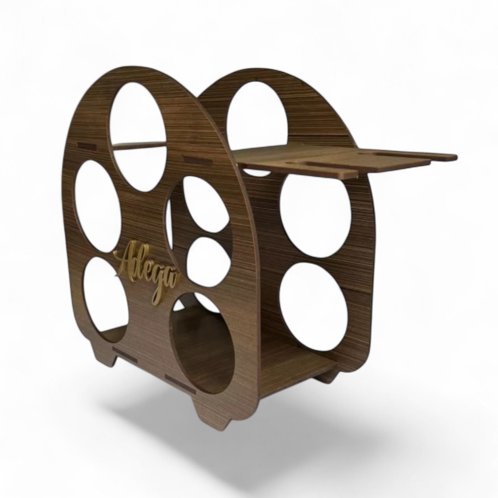 Adega de Vinhos Redonda Retrô Expositora 5 litros com Suporte para 4 Taças MDF de Qualidade