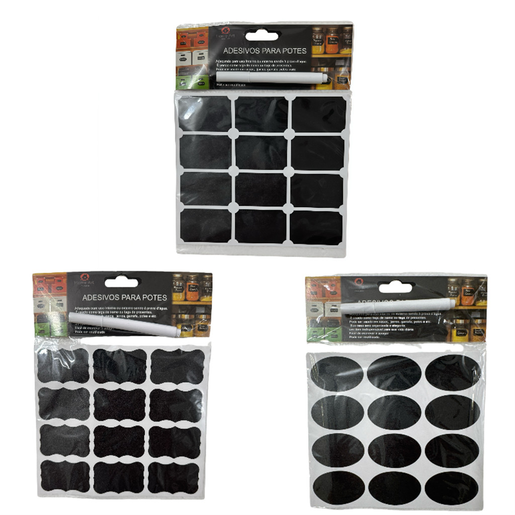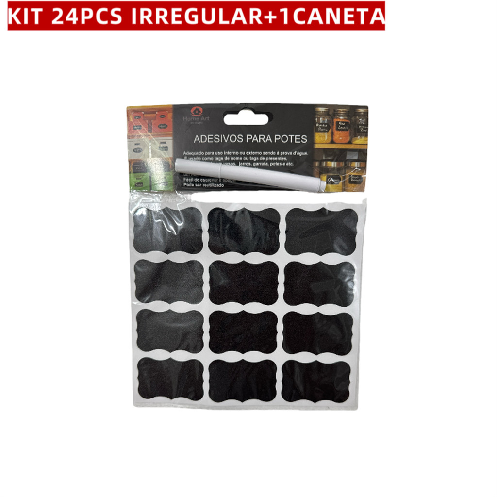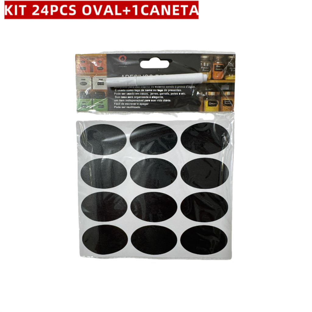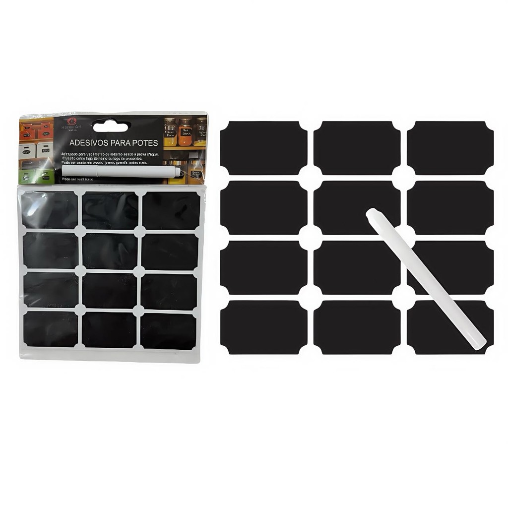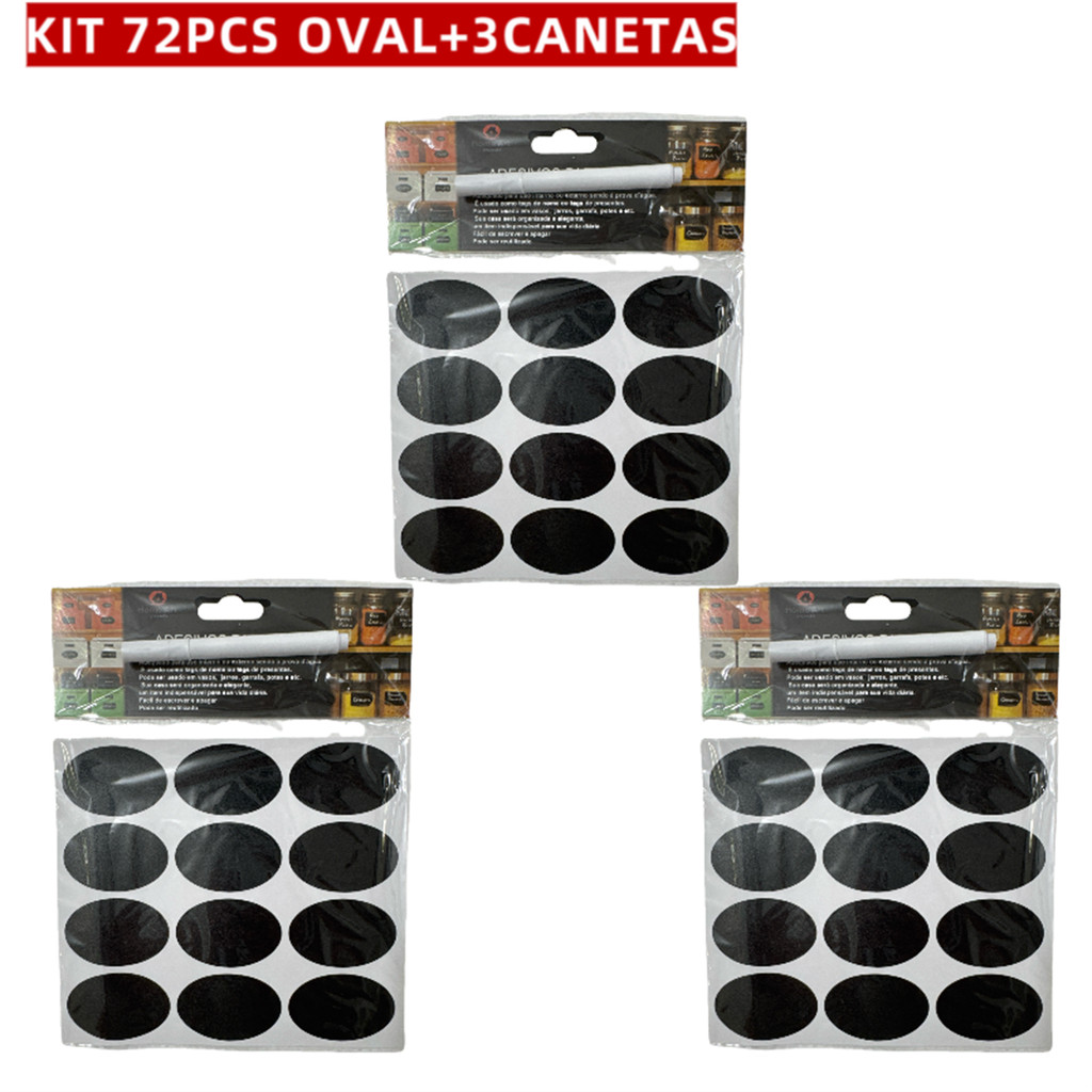 KIT 24-72 Etiquetas Adesivas Lousa Preta+Caneta Giz Liquido Branca Temperos Potes Organizador Limpeza ZH-047