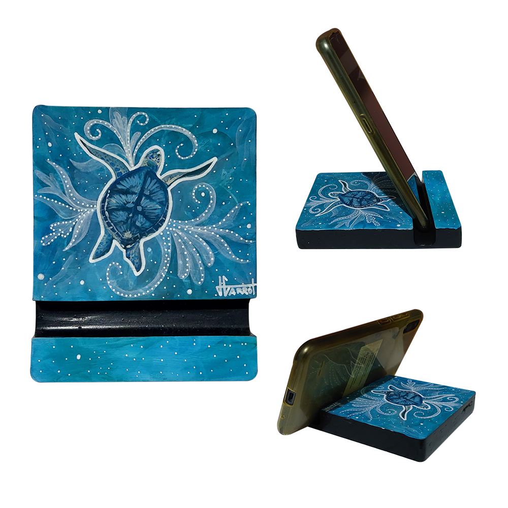 Suporte para Celular de Mesa Decorativo Pintado à Mão - Peça Única