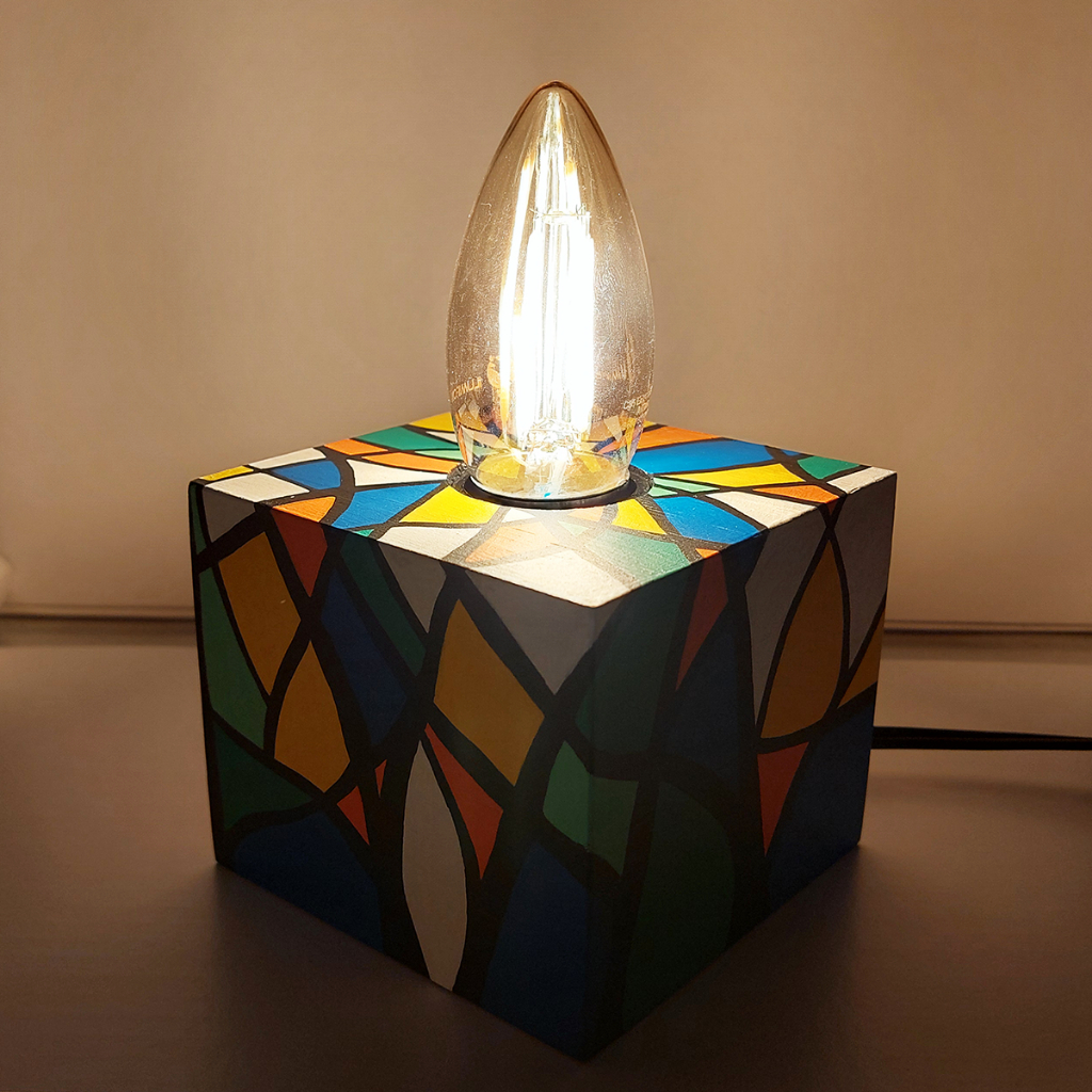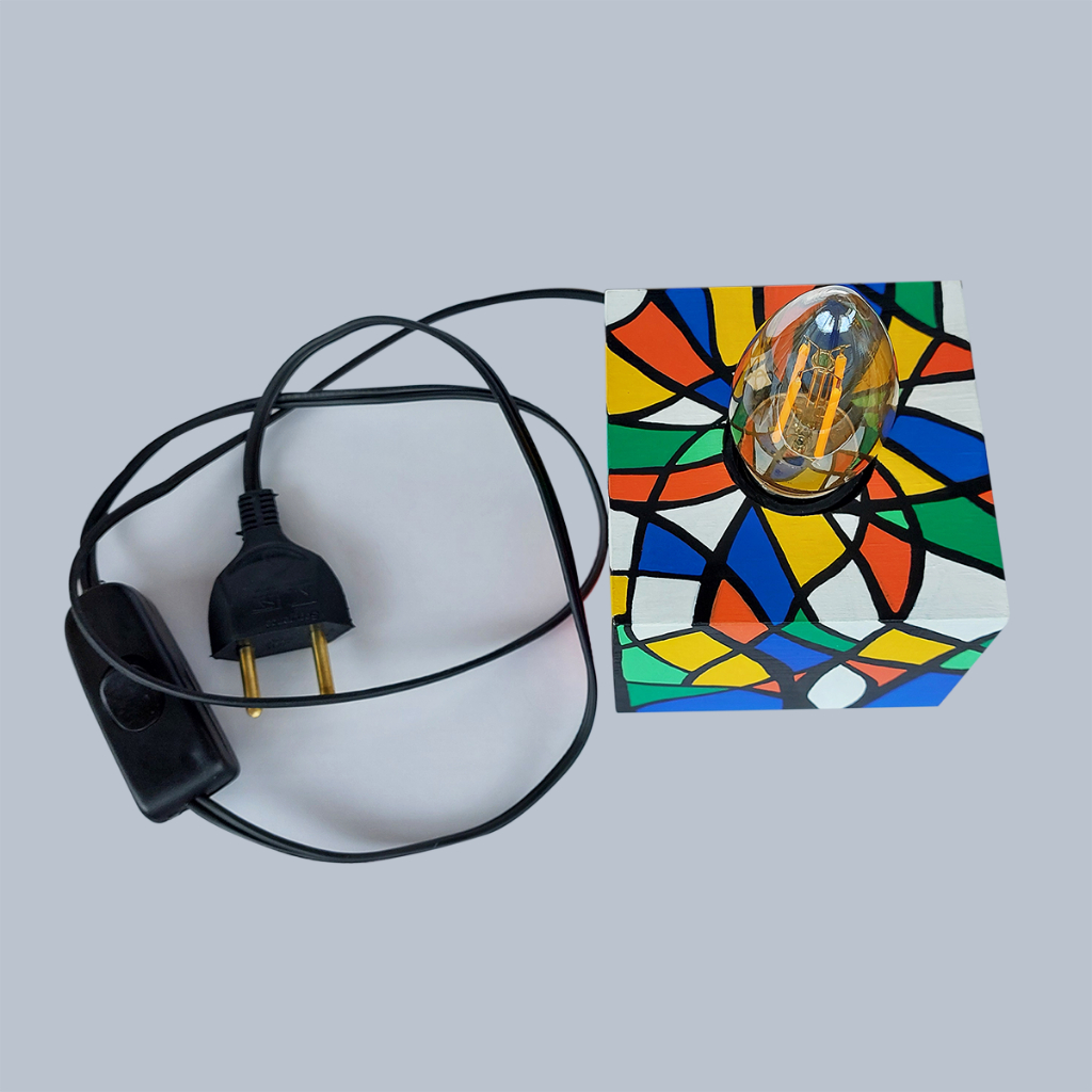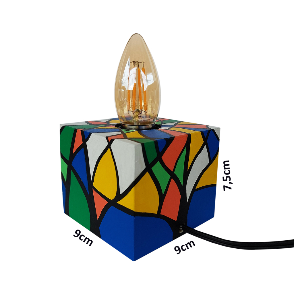 Luminária de Mesa Mini Cubo de Madeira com Lâmpada de Led 127V