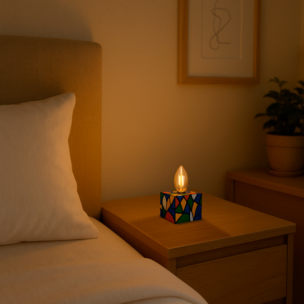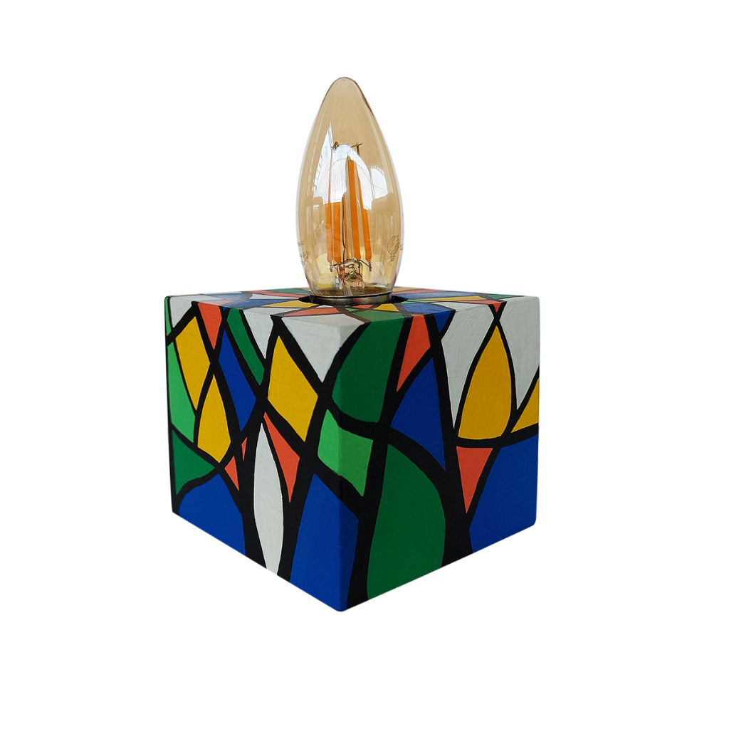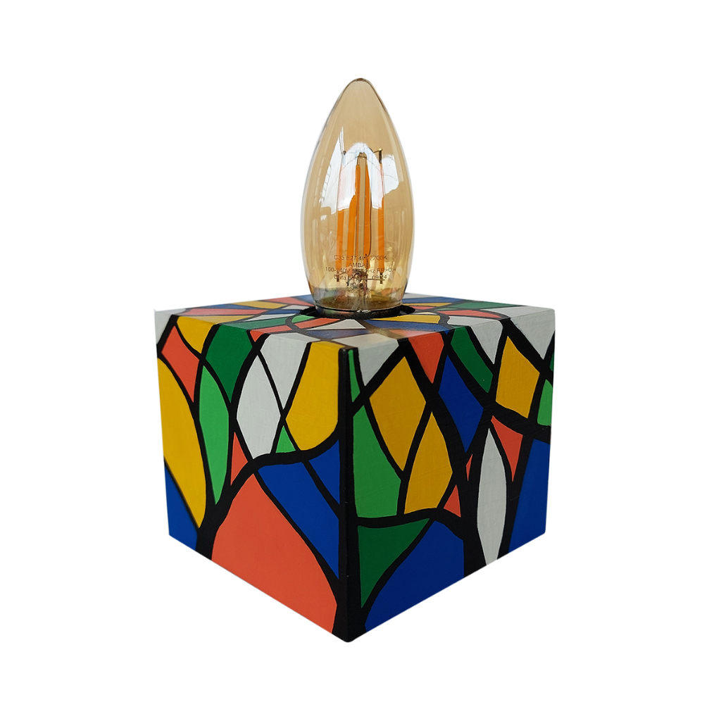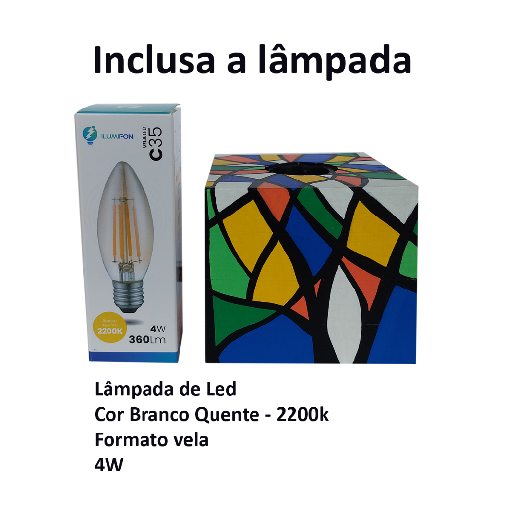 Luminária de Mesa Mini Cubo de Madeira com Lâmpada de Led 127V