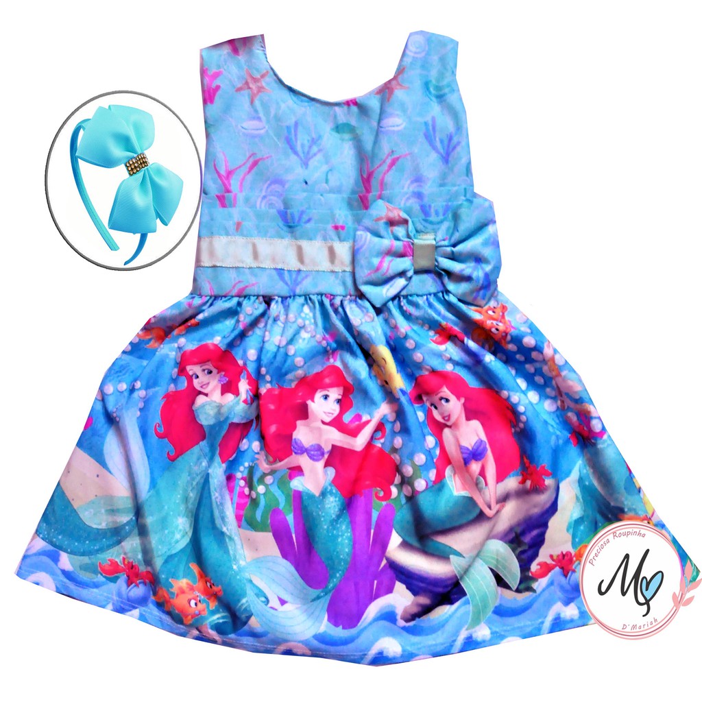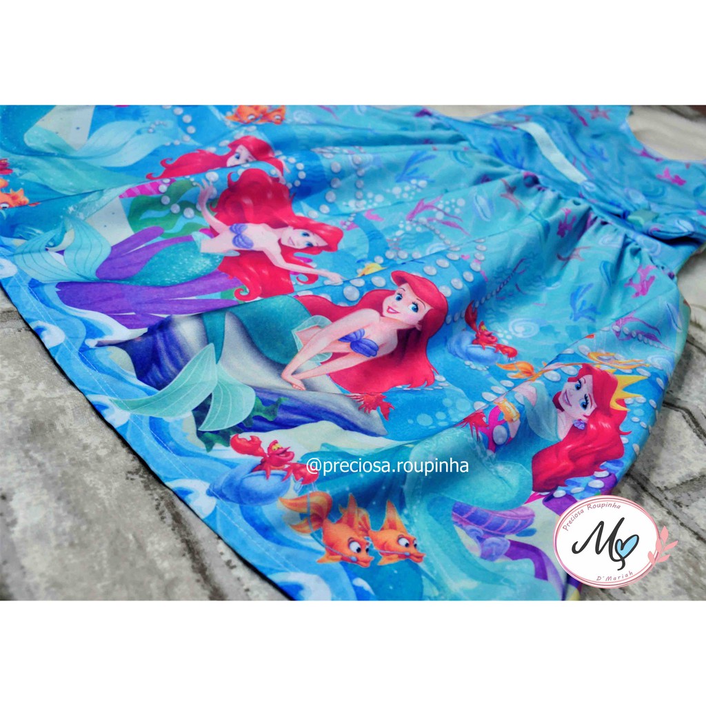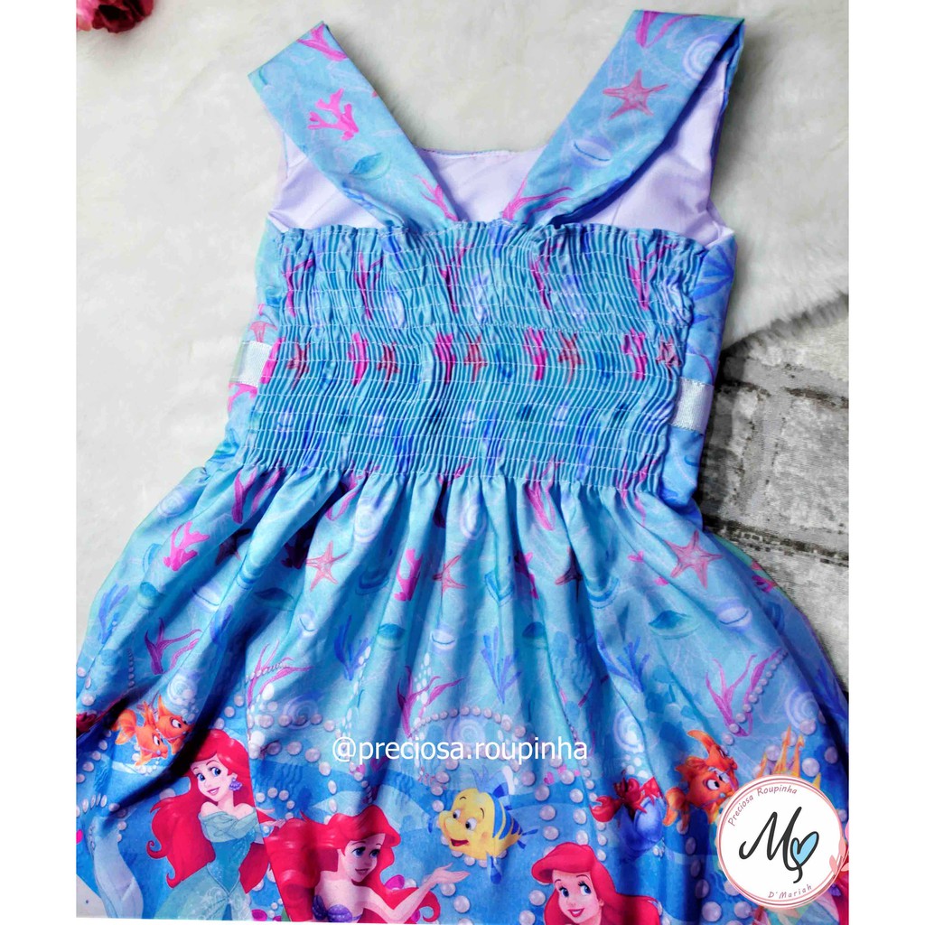 Vestido Infantil Personagem Temático Princesa Ariel Pequena Seria Fundo do Mar Passeio Promoção