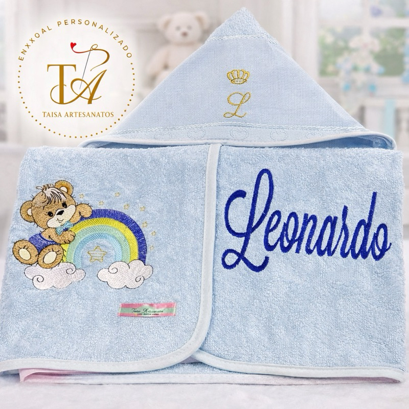 Toalha de Banho com Capuz Forrada com Fralda com Nome e Desenho Personalizado