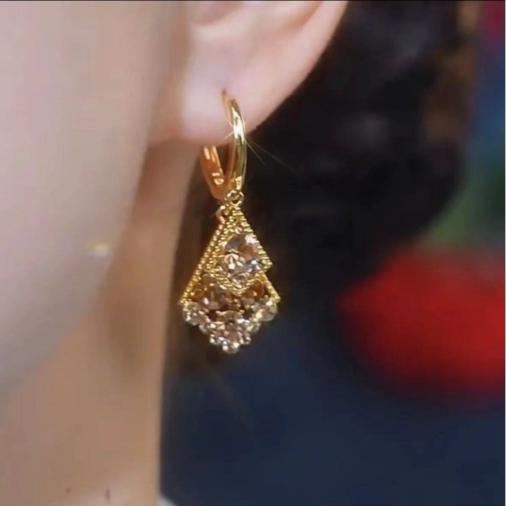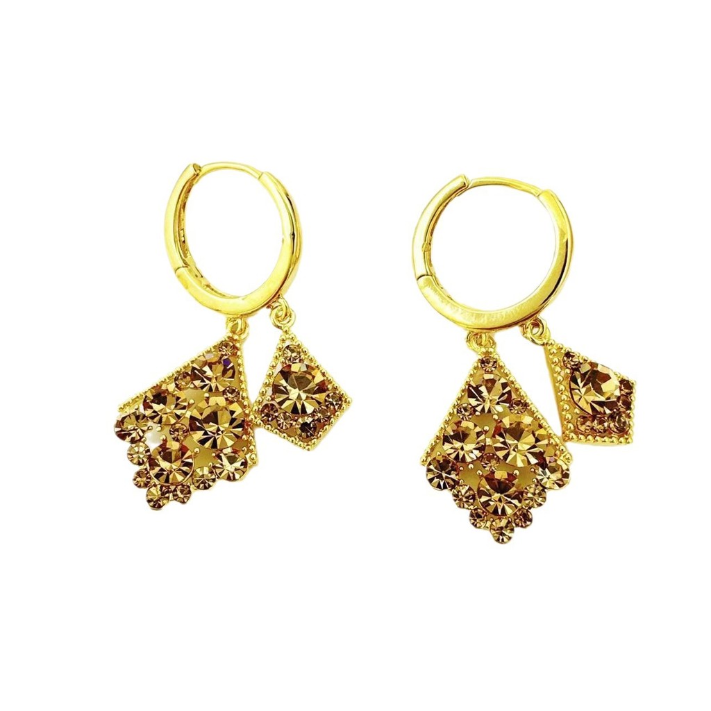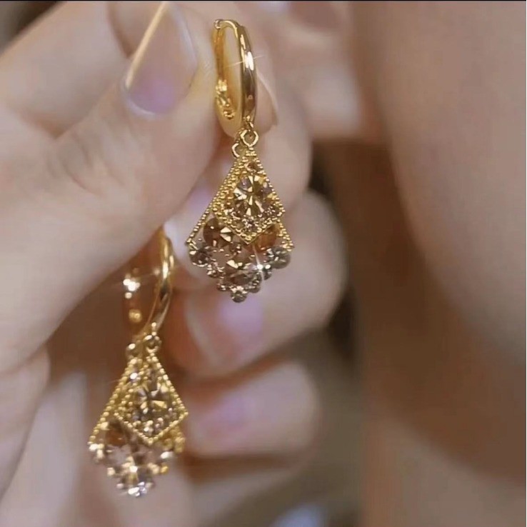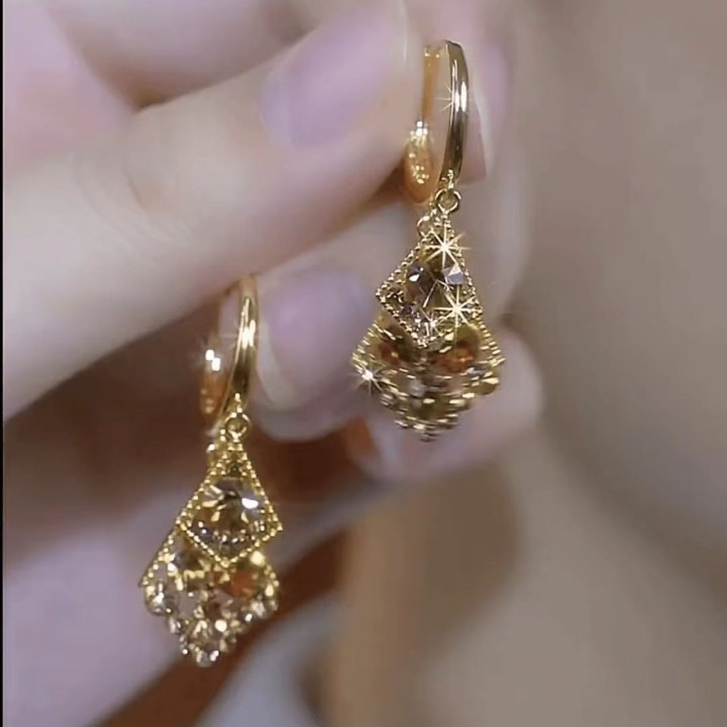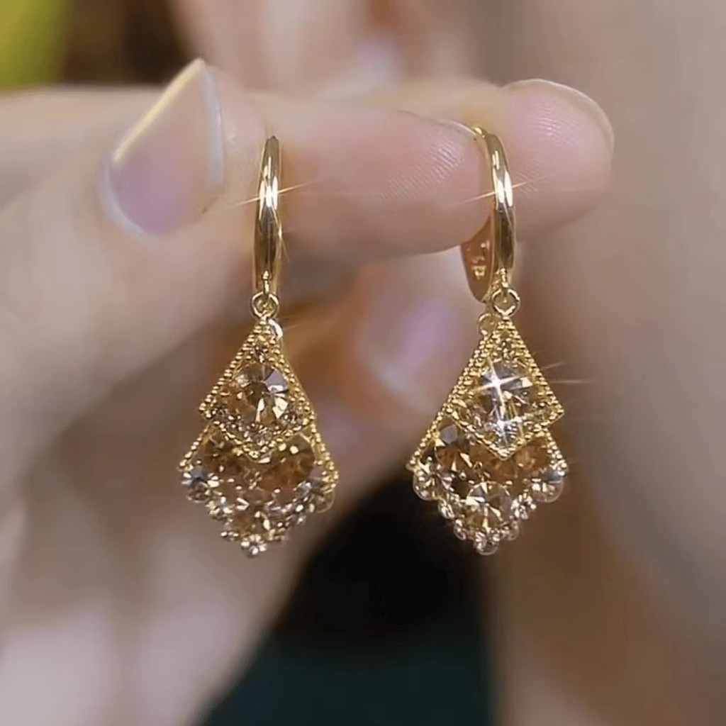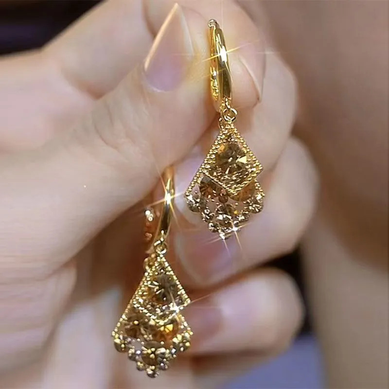 Brincos De Diamante Geométricos Cravejados De Diamantes Coloridos Champanhe São Elegantes , Luxuosos E Femininos De Alta Qualidade