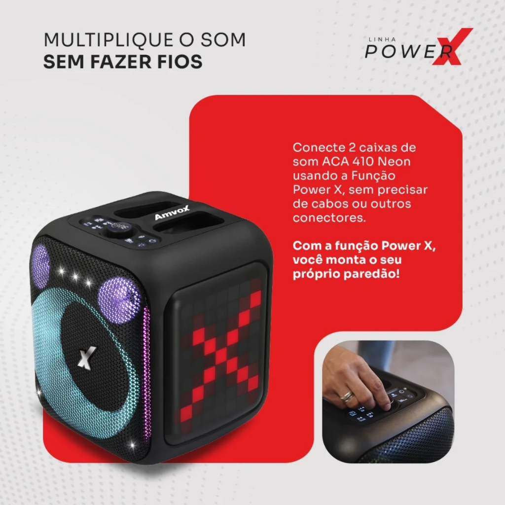 Caixa de Som Bluetooth Portatil Amplificadora ACA 410 Neon 410W Bivolt Amvox