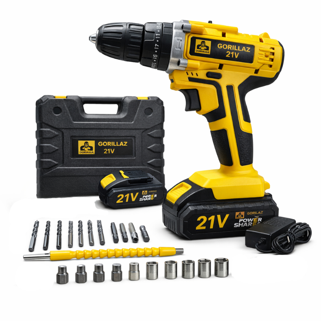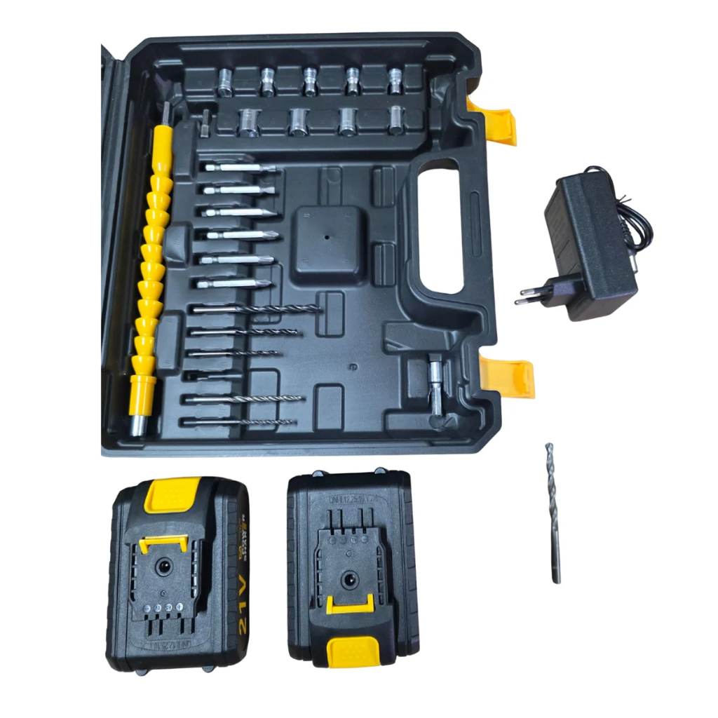 PARAFUSADEIRA E FURADEIRA 21V 2 BATERIAS 3 FUNÇÕES- SW11- BIVOLT AMARELA GORILLAZ