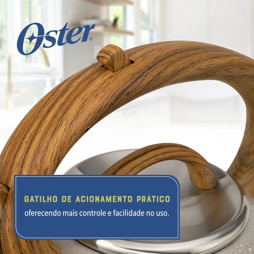 Chaleira 3 Litros com Apito Clydepark Oster Inox Marmorizada Cinza