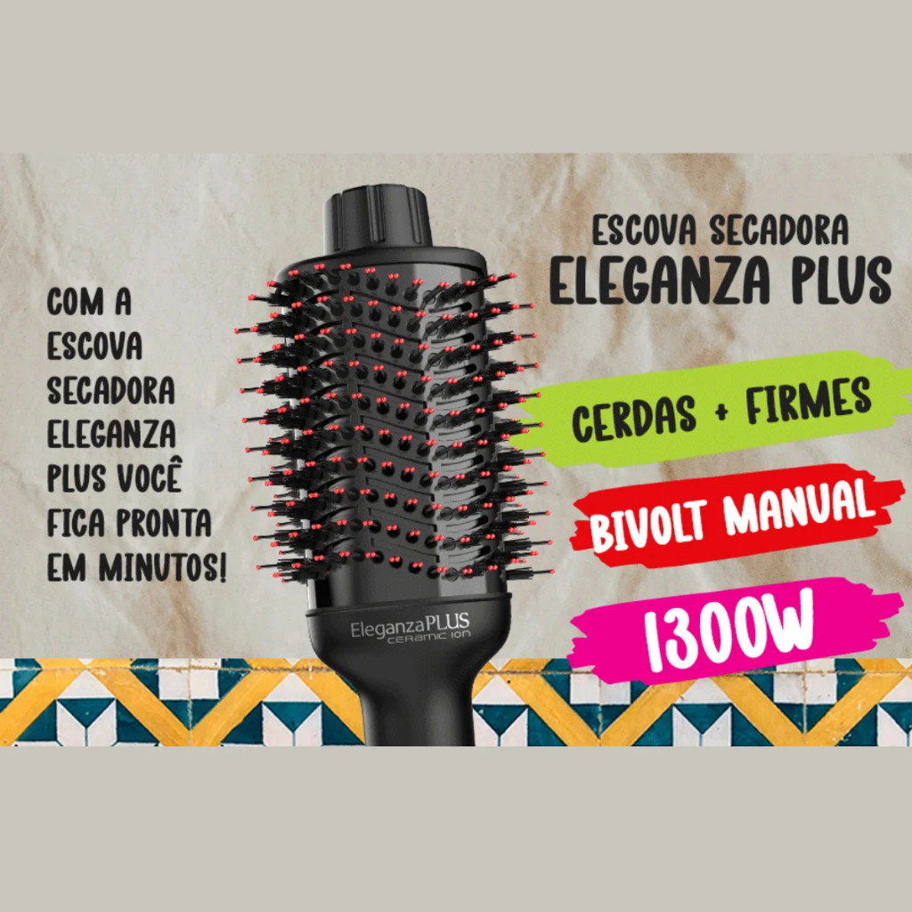 Escova Secadora Eleganza Plus GAMA Bivolt 110/220V 1300W Potente 6 Velocidades 2 Temperaturas Ceramic Ion
