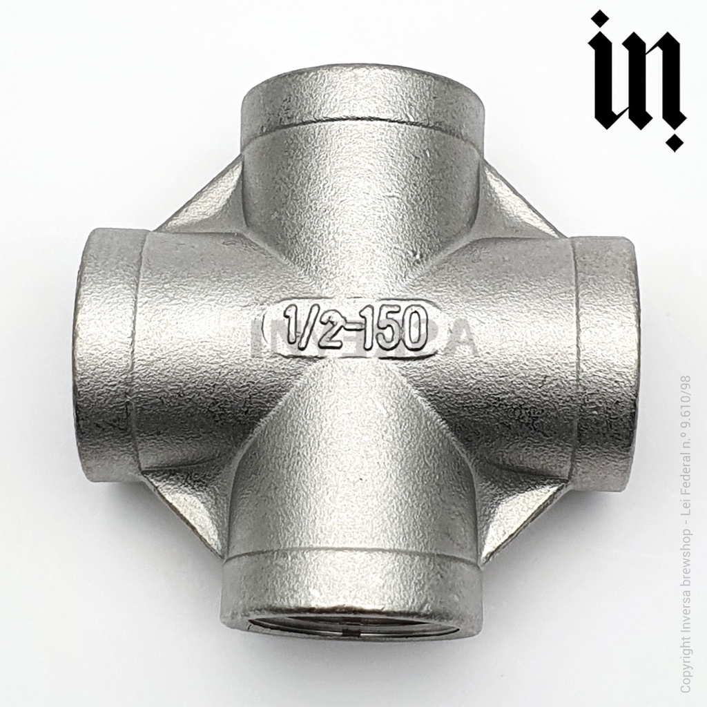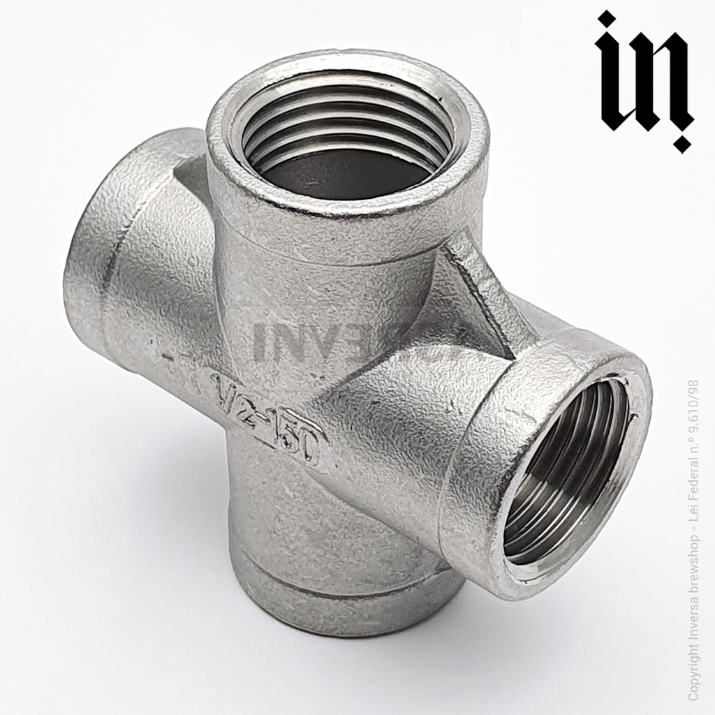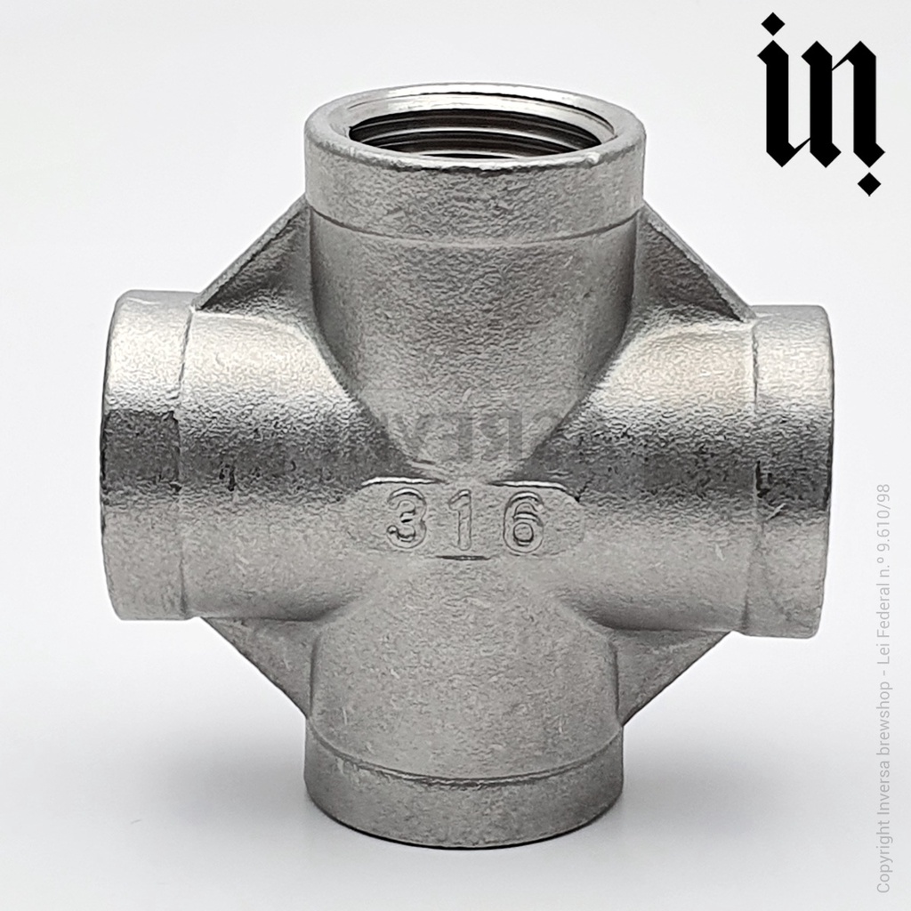 Conexão X Cruzeta Inox 316 Rosca BSP Ø 1/2" Conector