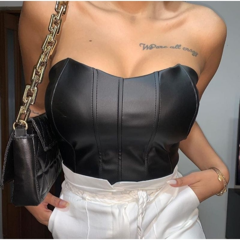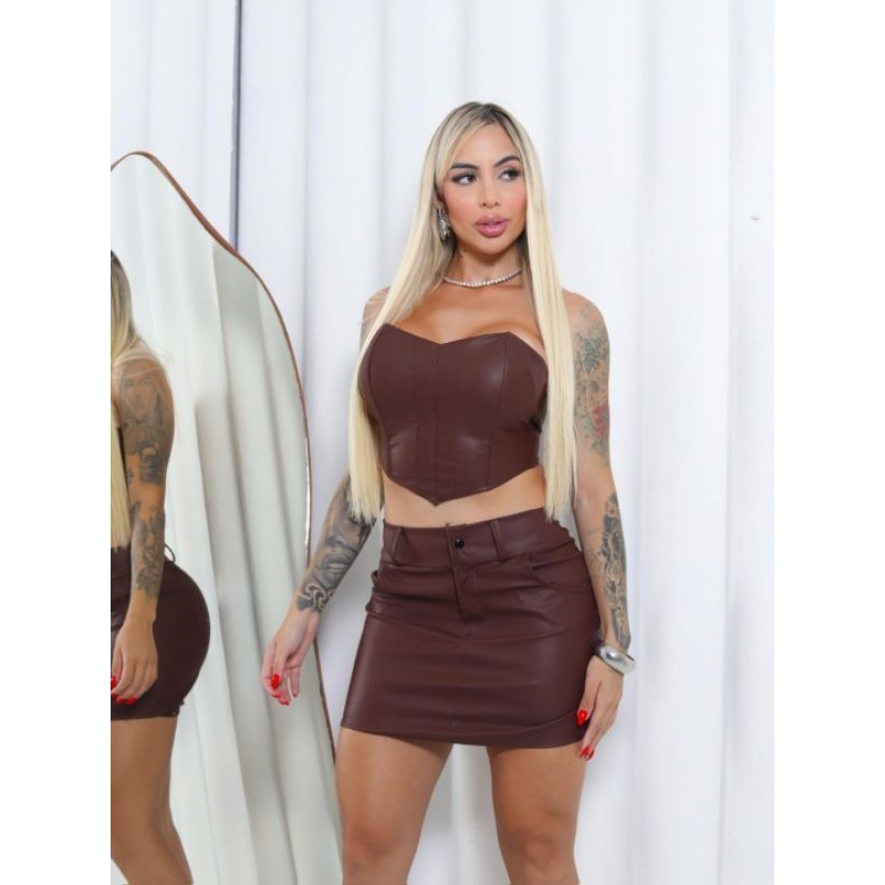 Cropped corset feminino Cropped courino