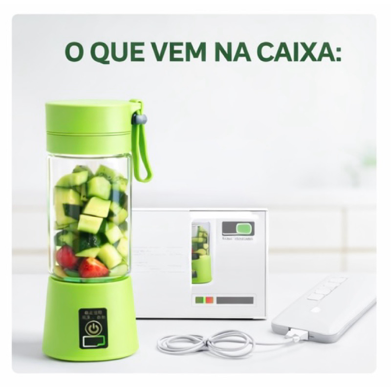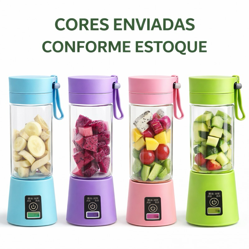 Mini Liquidificador Portátil USB Recarregável 6 Lâminas Shake Suco Academia 380ml Sem Fio