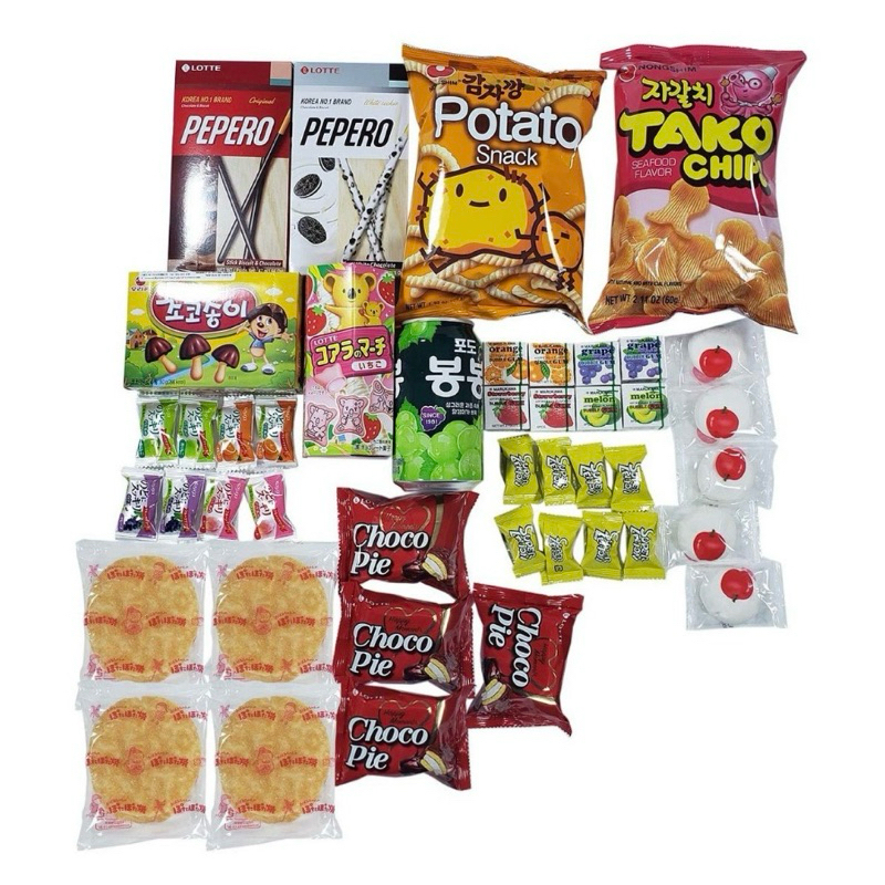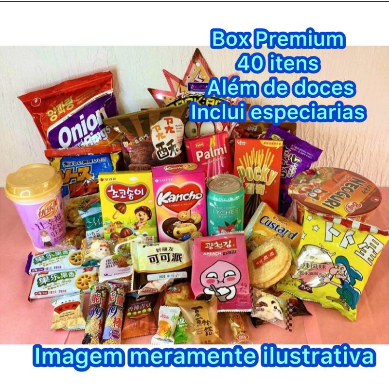Caixa Oriental Asiática com Mix de Guloseimas, pode conter Balas, Doces, Salgadinhos, Lamen,sucos e Refrigerante