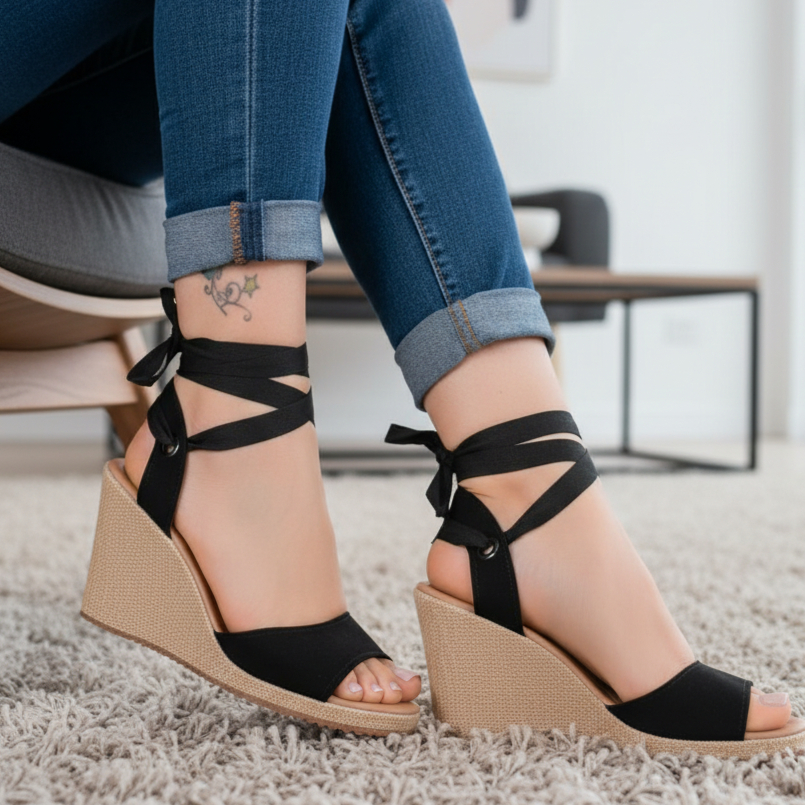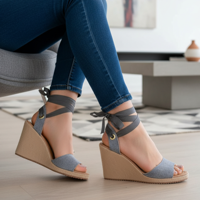 Sandália Anabela De Amarrar Salto Plataforma