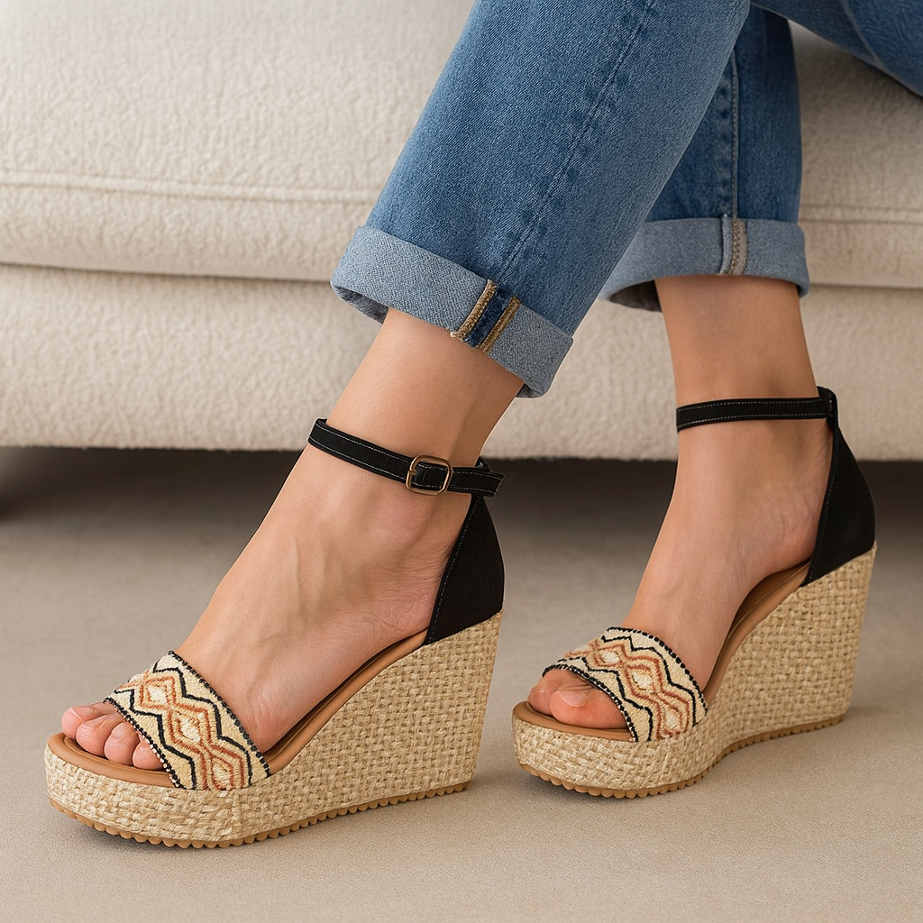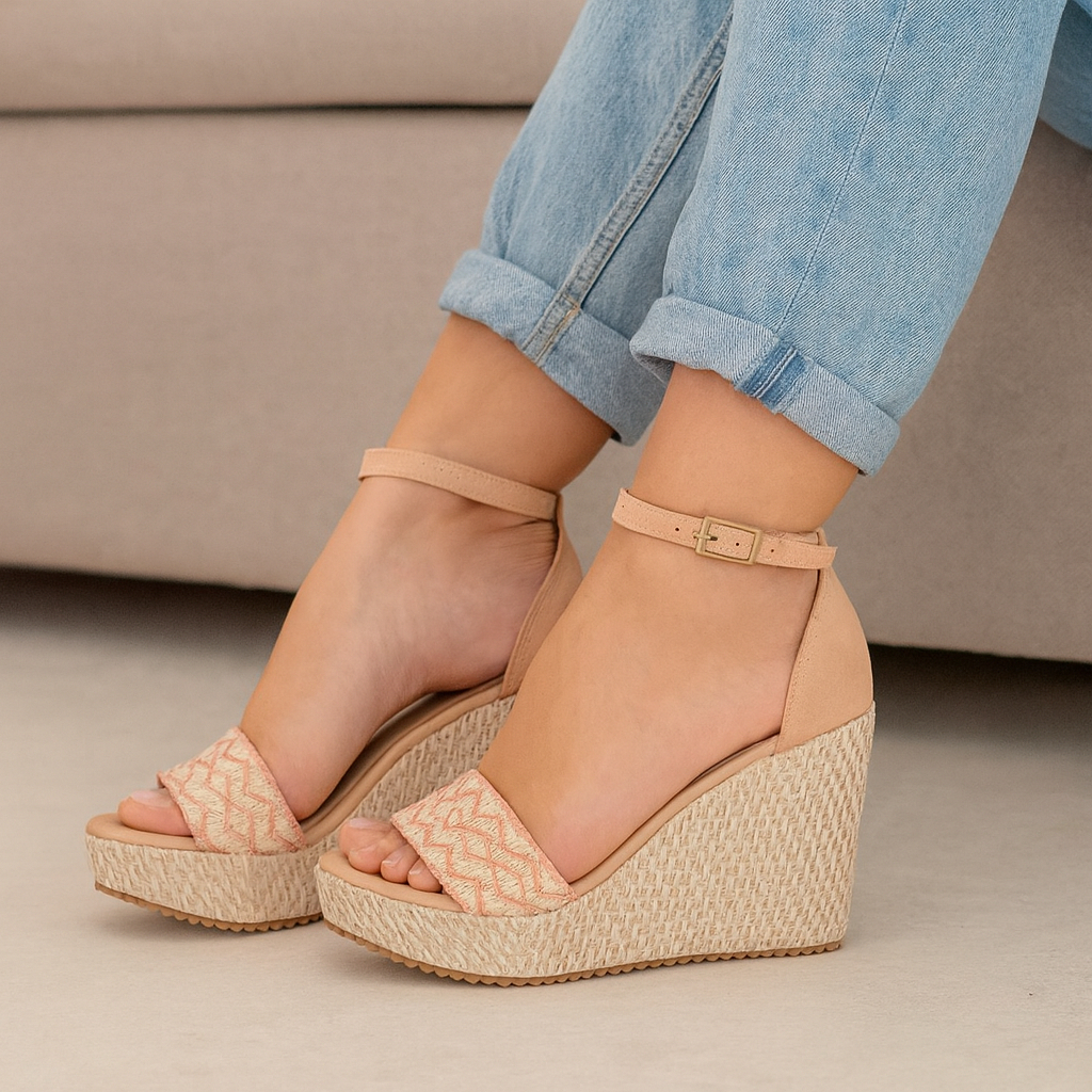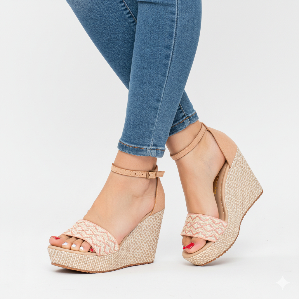 Sandália Anabela Amarração Perna Plataforma Feminino Sapato moderno Cor Básica Tendência