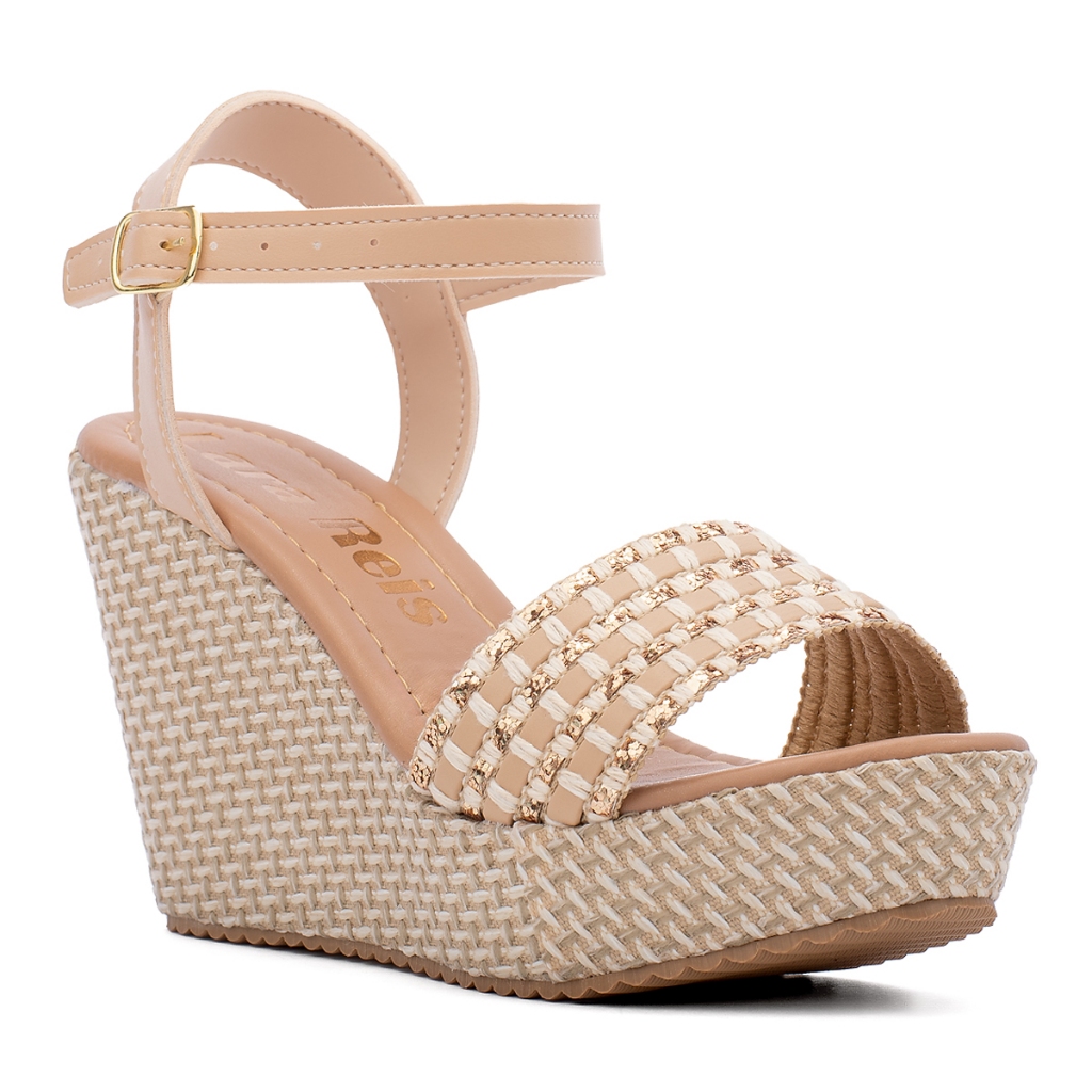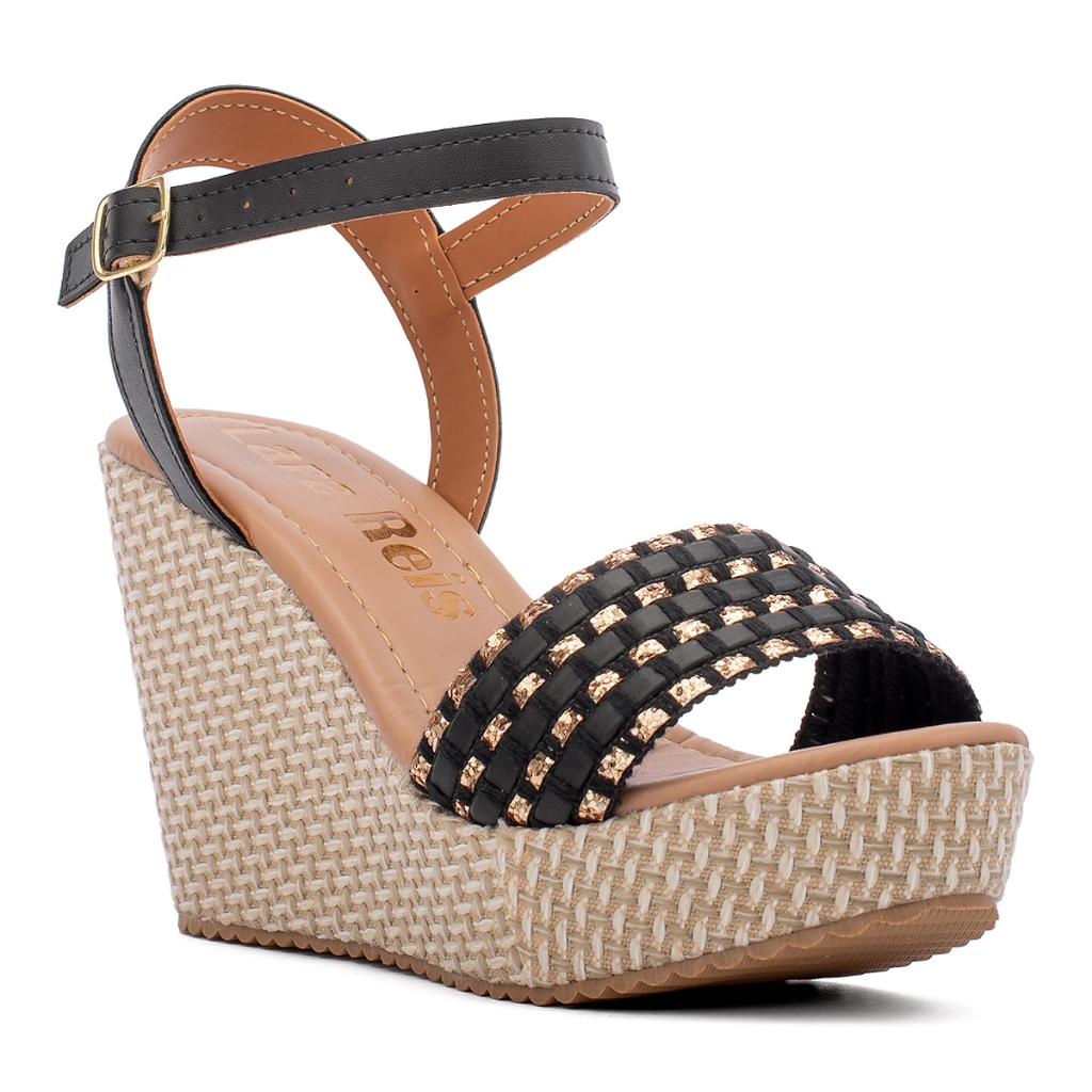 Sandália Feminina Anabela Meia Pata Plataforma Salto Grosso