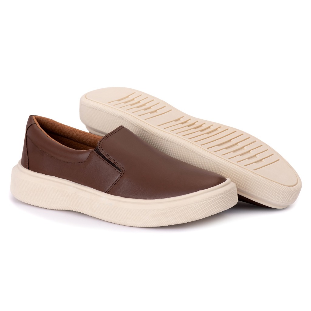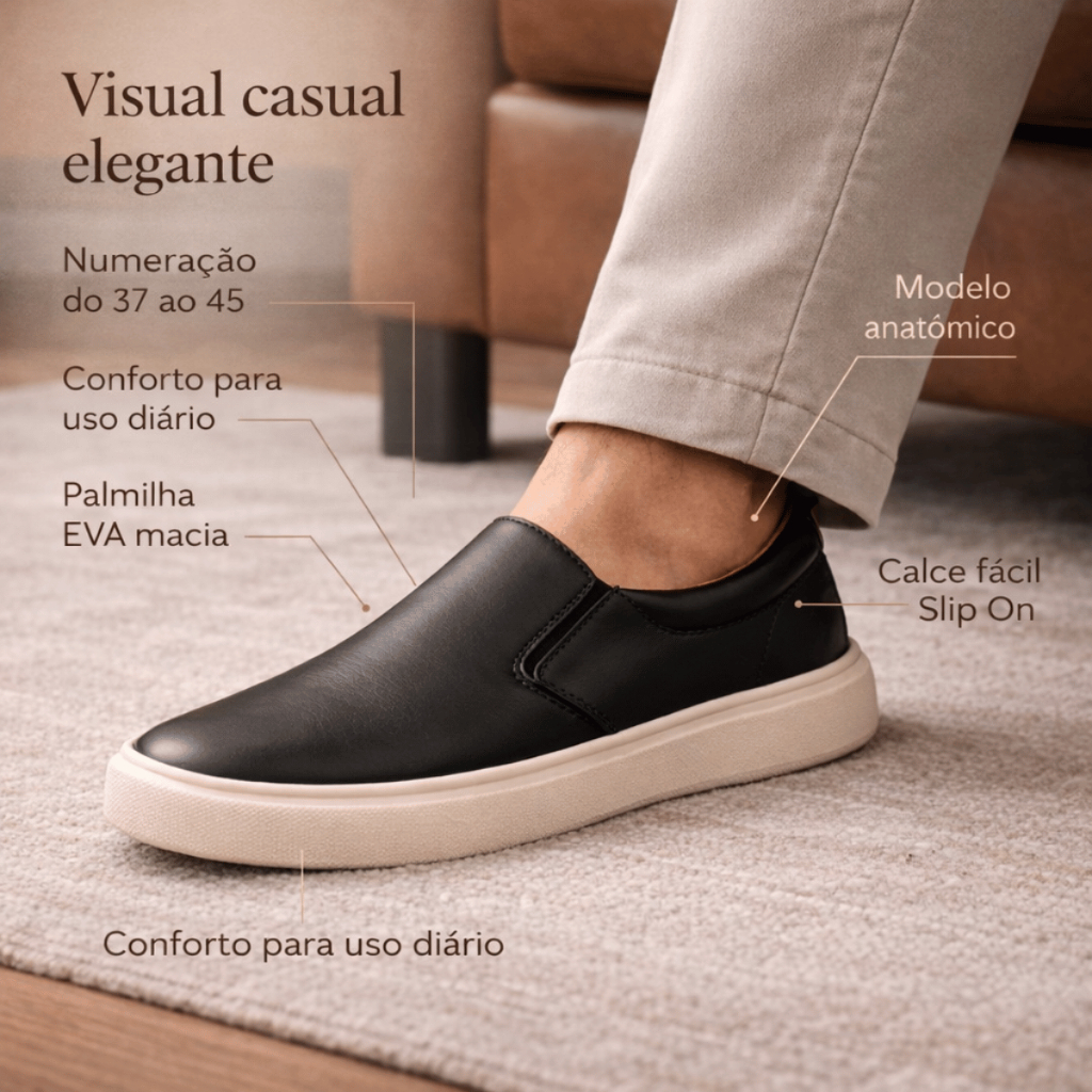 Tênis Sapatenis Casual Iate Couro Sintético Confortável Slip On Dia Dia Calce Fácil Off