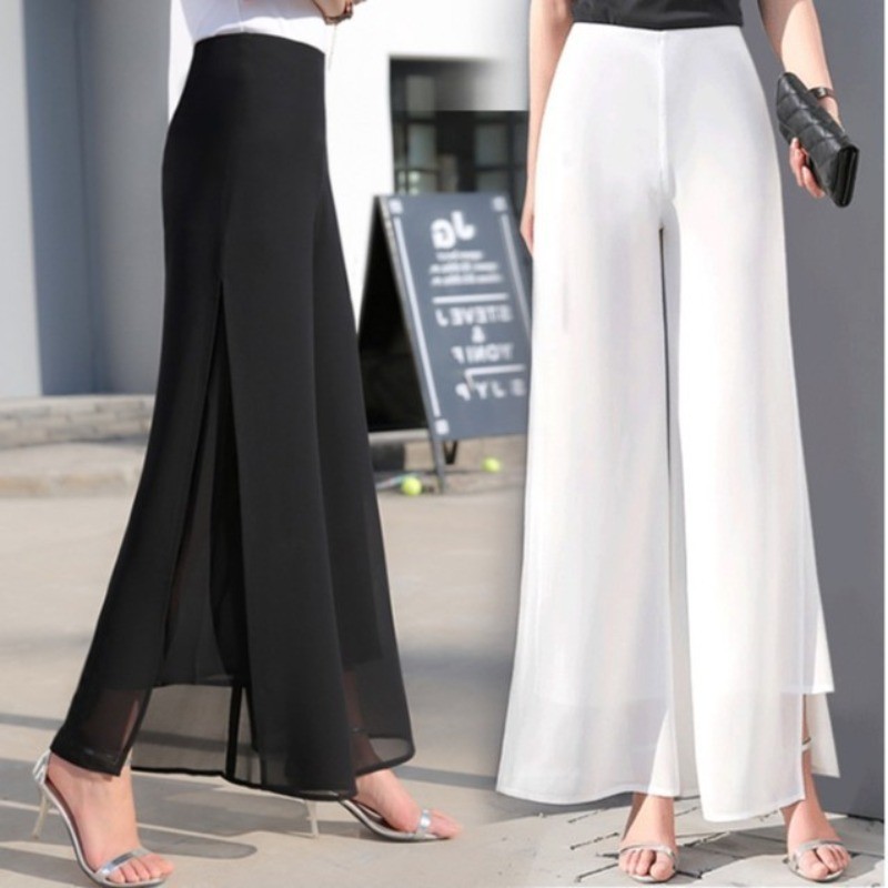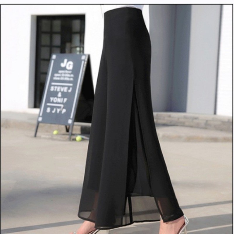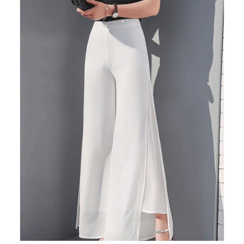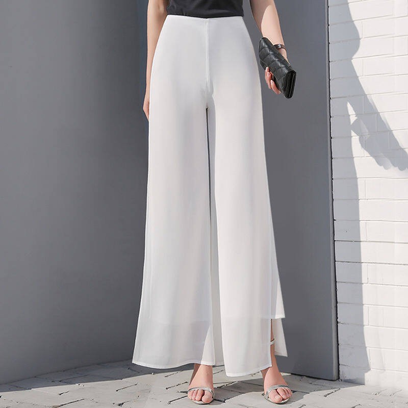 Coreano Feminino Cor Sólida Chiffon Calças De Perna Larga Verão Solto Pendurado Cintura Alta Magro Reta