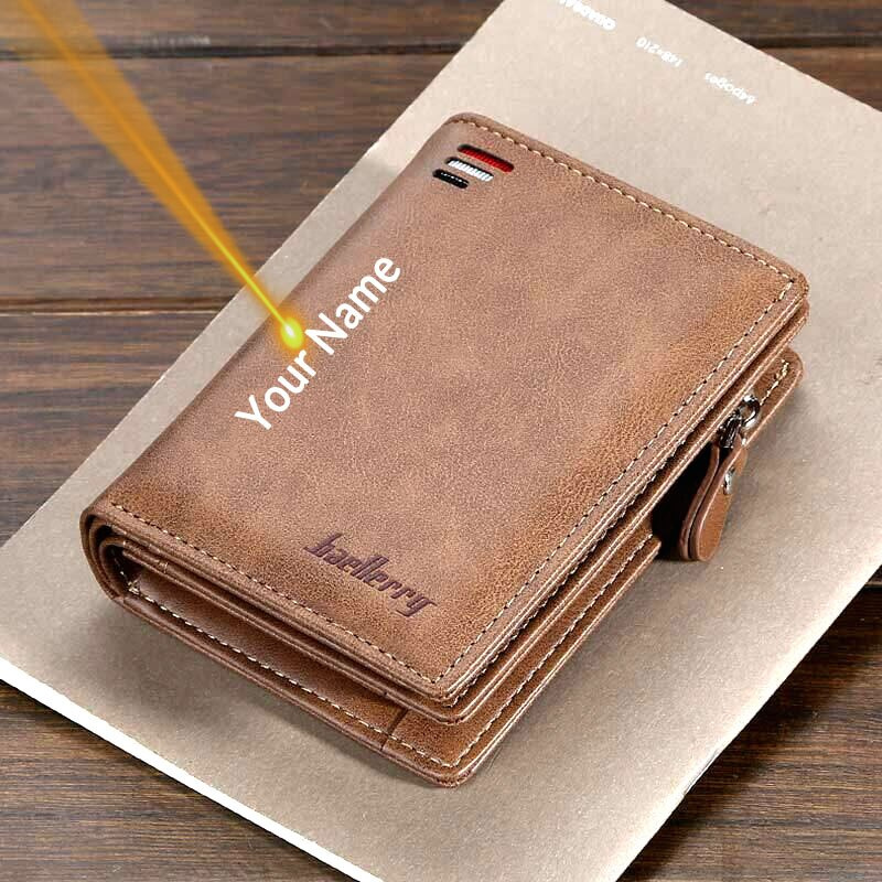 Carteiras Masculinas Com Gravura De Nomes Com Zíper Titular Do Cartão De Couro Vintage Pu Presente Dia Dos Namorados