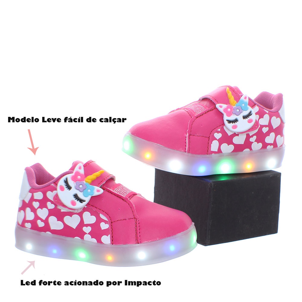 Kit Tenis Calcado com Luzinha de Led Pisca Pisca Unicornio Pink Meninas Infantil Feminino+ Pulseira