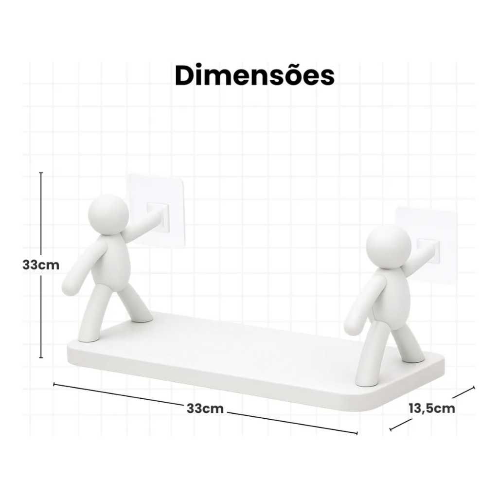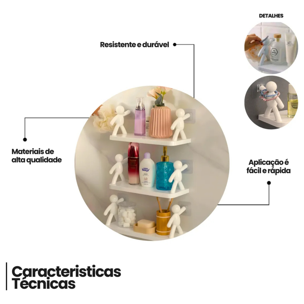 Kit 1/2 Prateleira Estante Bonequinho plástico com suporte decorativa banheiro cozinha C/ Adesivo