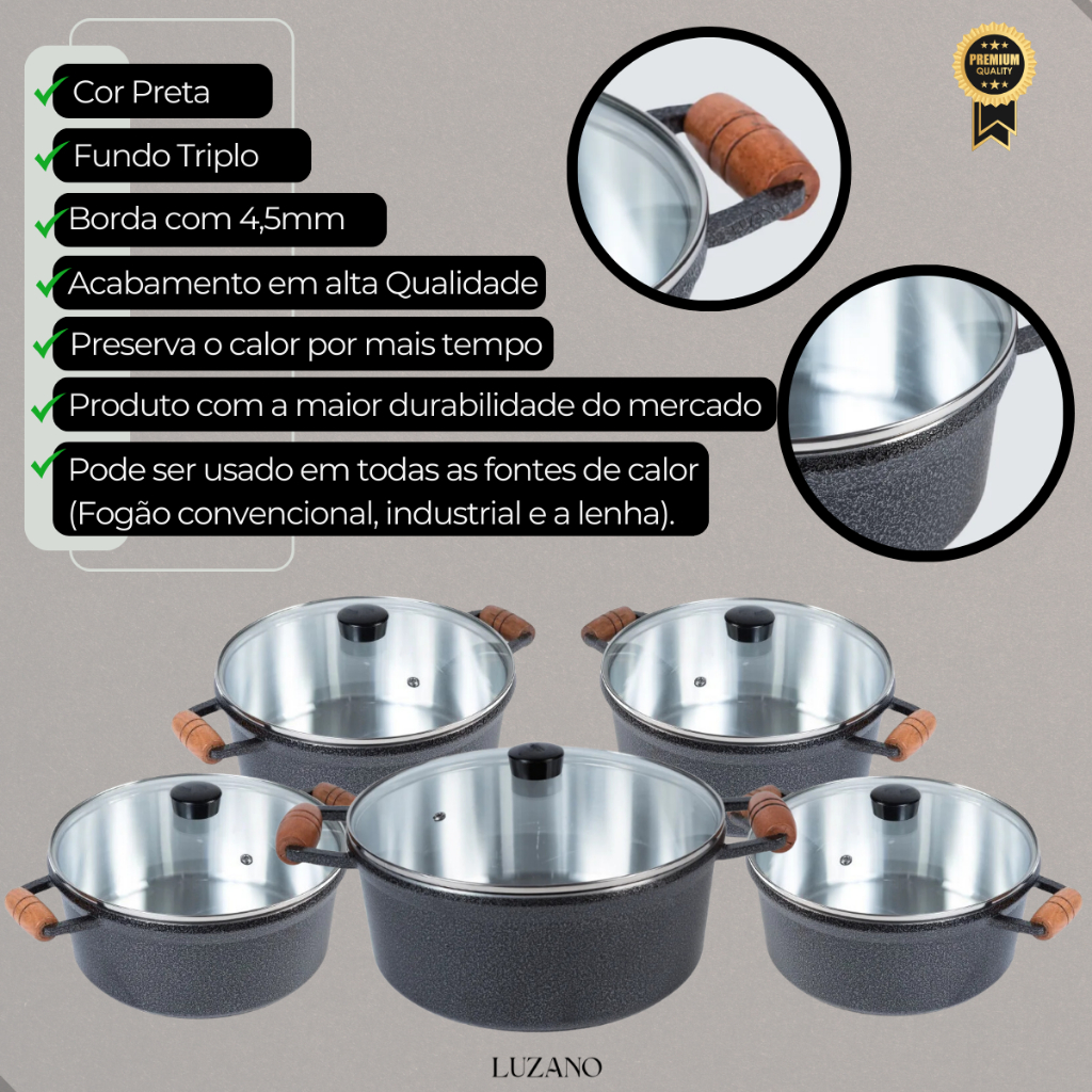 Jogo de Panelas Panela Alumínio Fundido Grosso Cava (Kit Completo 5 peças)