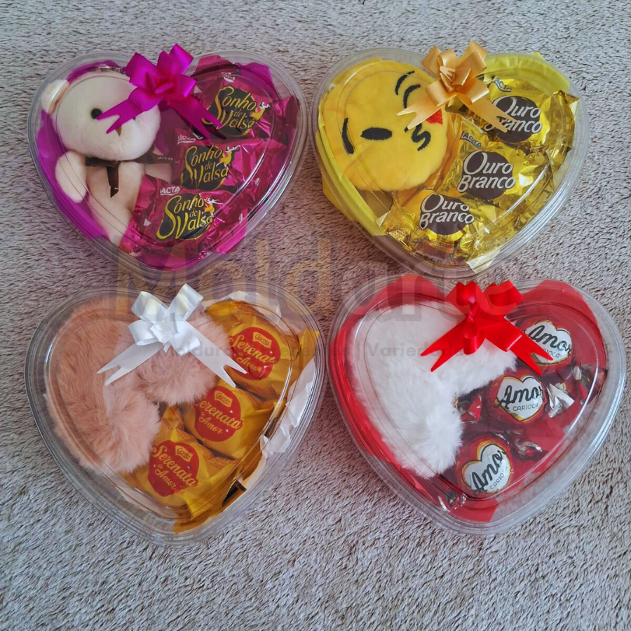 Coração de chocolate com 3 bombom + chaveiro 1 unid para lembrancinhas