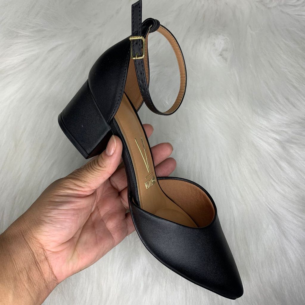 Sapato Scarpin Vizzano Salto Baixo Feminino Bico Fino Confortável Trabalho