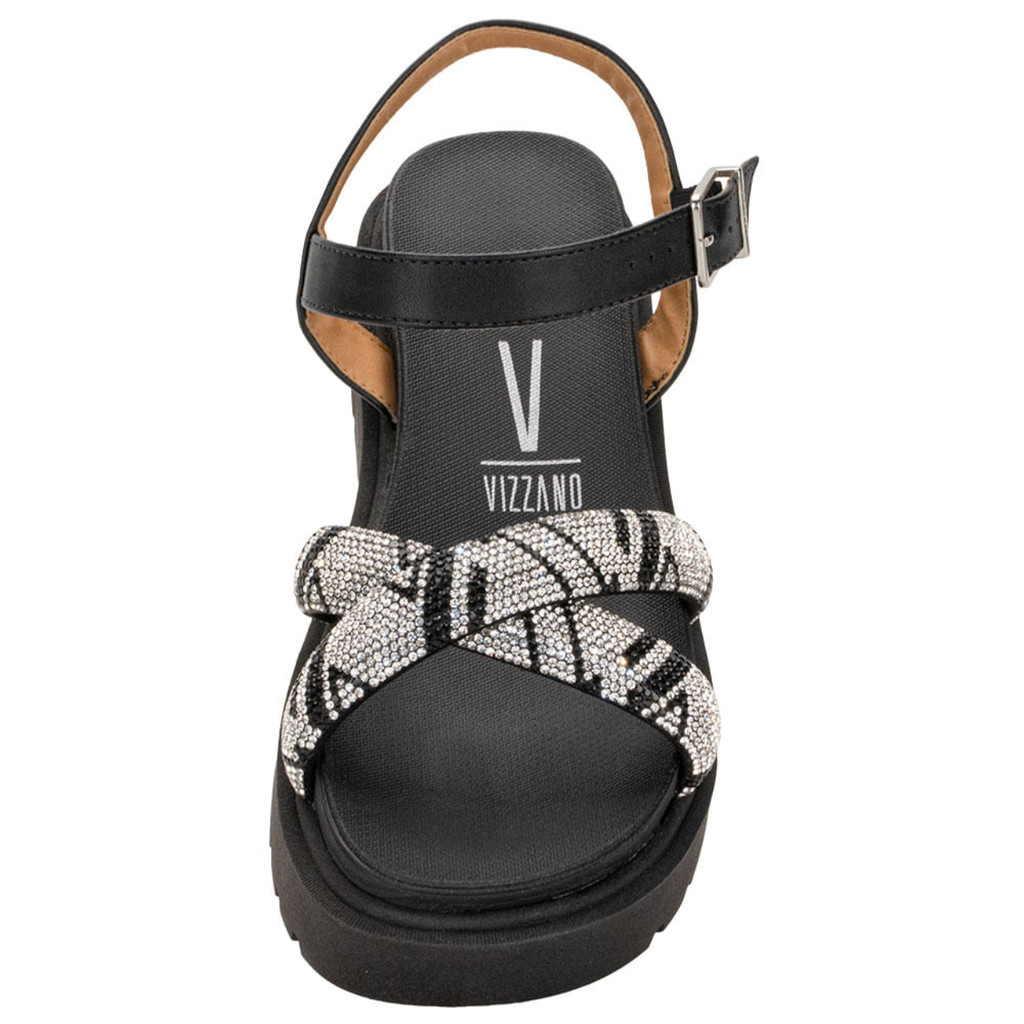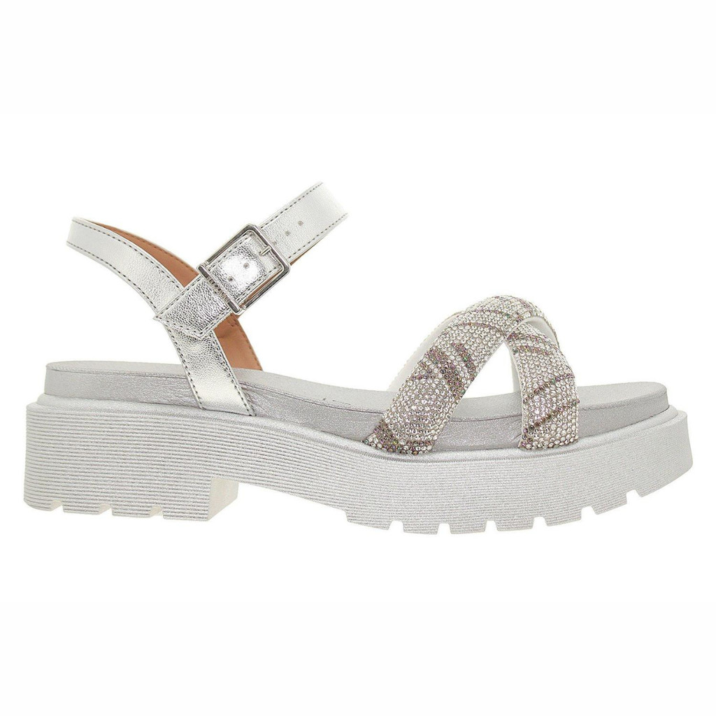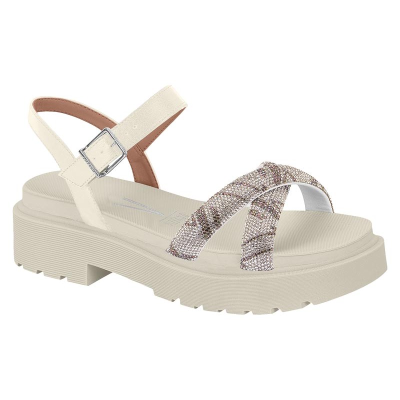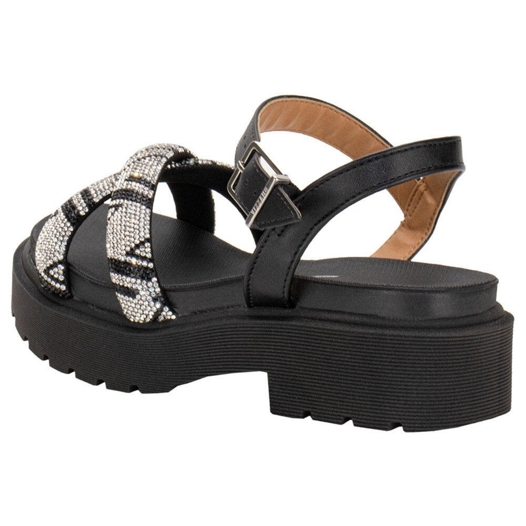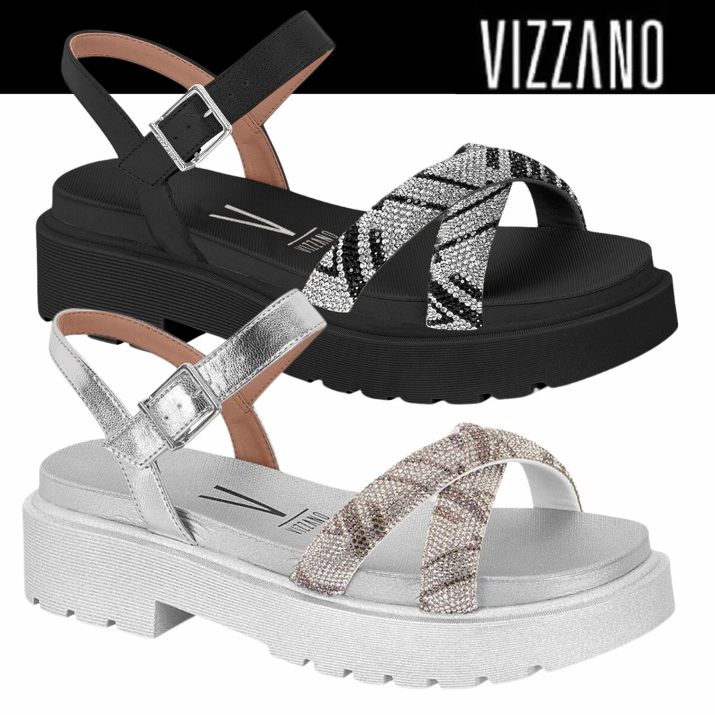 Sandália Papete Feminina Vizzano Tratorada Tiras em X Strass Brilho Conforto