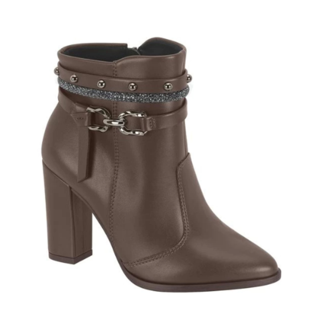 Bota Feminina Beira Rio Cano Curto Corrente Tachas Salto Alto Confortável