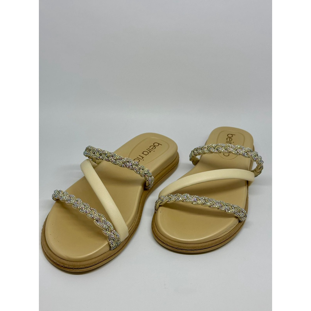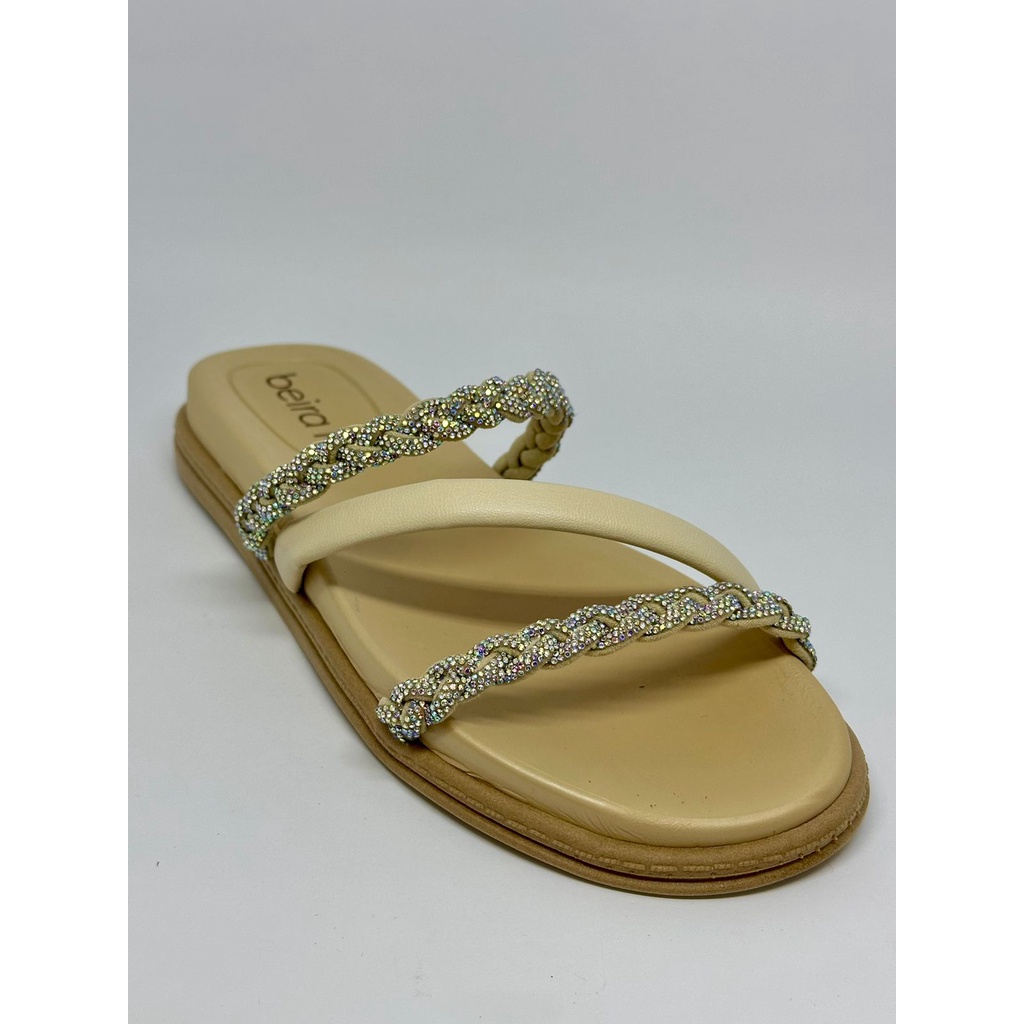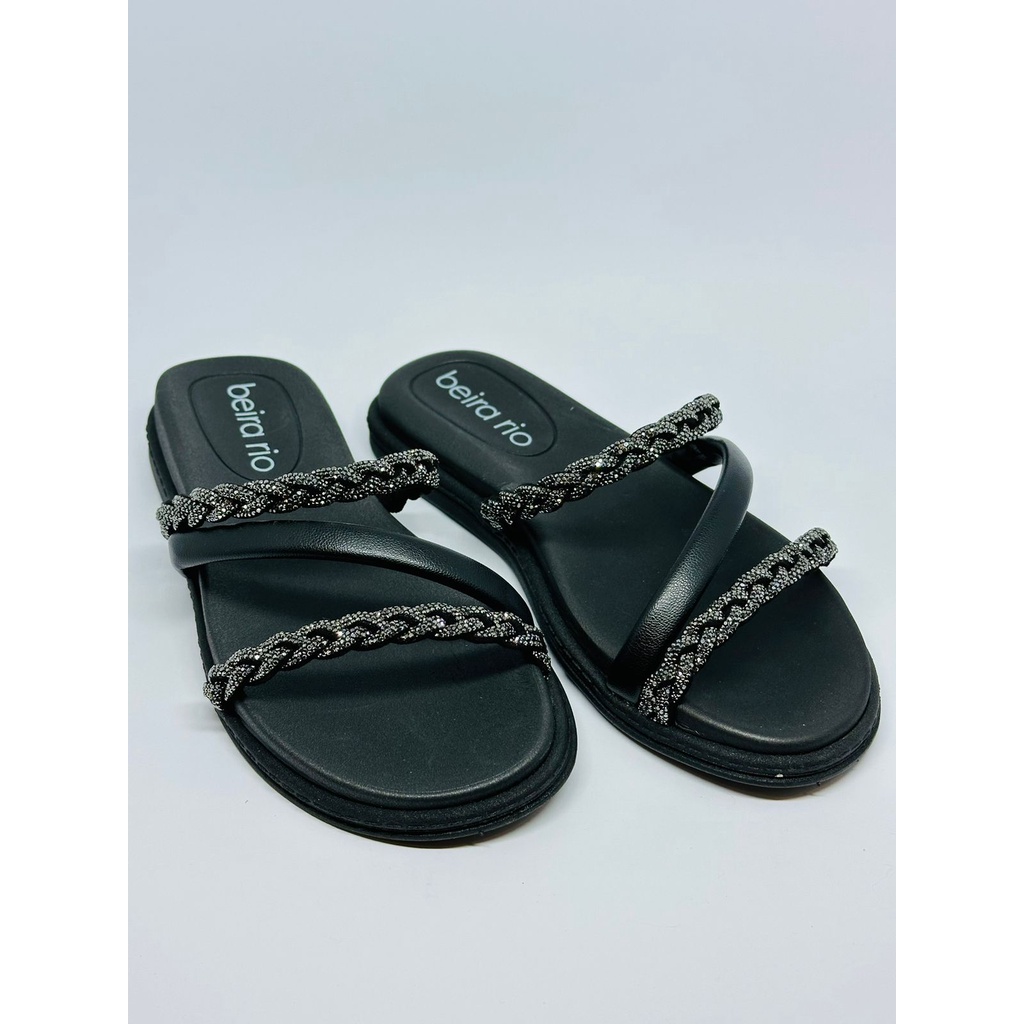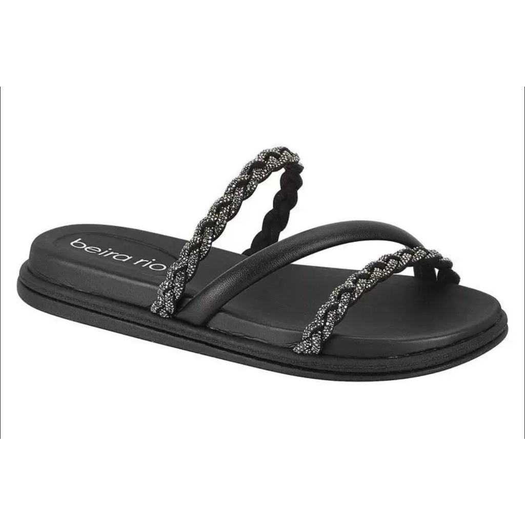 Sandália Feminina Beira Rio Rasteira Chinelo Multi Birken 3 Tiras Trançada Strass Brilho Glitter