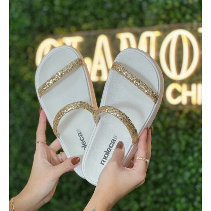 Tamanco Papete Feminina Moleca Flat Duas Tiras Brilho Maxxi Glitter ORIGINAL