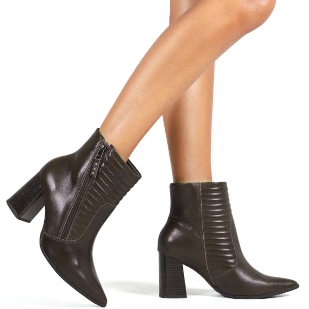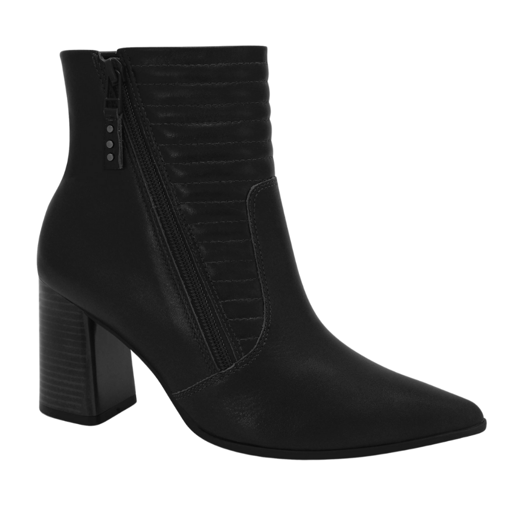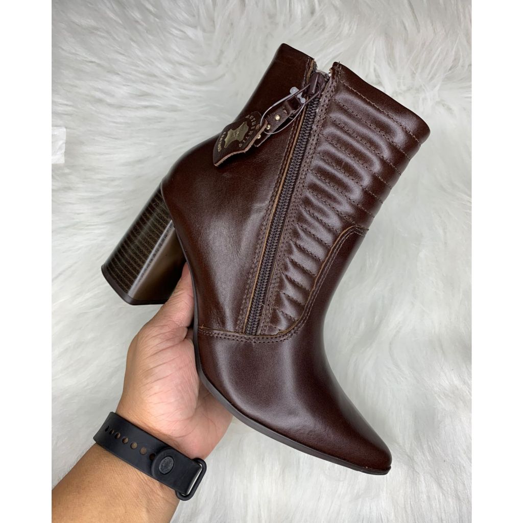Bota Feminina Ramarim Cano Curto Bico Fino Couro Original Salto Alto Bloco Inverno