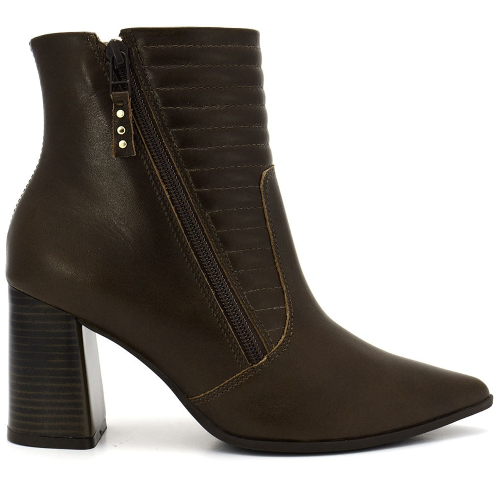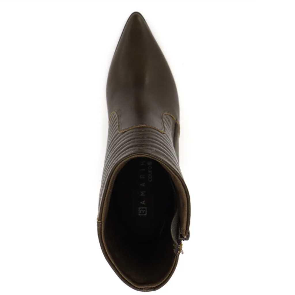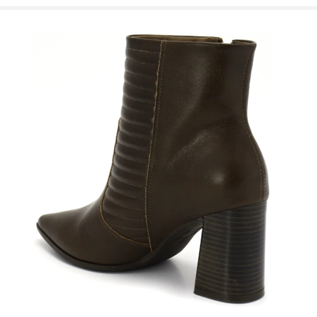 Bota Feminina Ramarim Cano Curto Bico Fino Couro Original Salto Alto Bloco Inverno